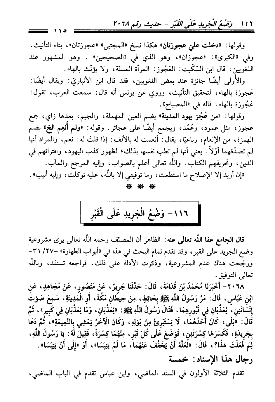 116 - وَضْعُ الْجَرِيدِ عَلَى الْقَبْرِ