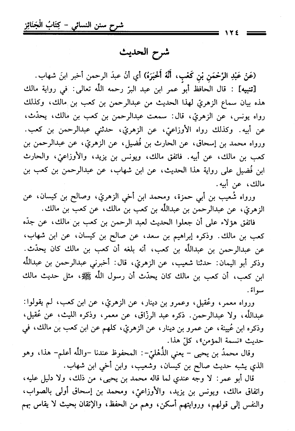 فاتفق هؤلاء على أن جعلوا الحديث لعبد الرحمن بن كعب بن مالك، عن جدّه كعب بن مالك. وذكره إبراهيم بن سعد، عن صالح بن كيسان، عن ابن شهاب، عن عبد الرحمن بن عبد اللَّه بن كعب، أنه بلغه أن كعب بن مالك كان يحدّث.