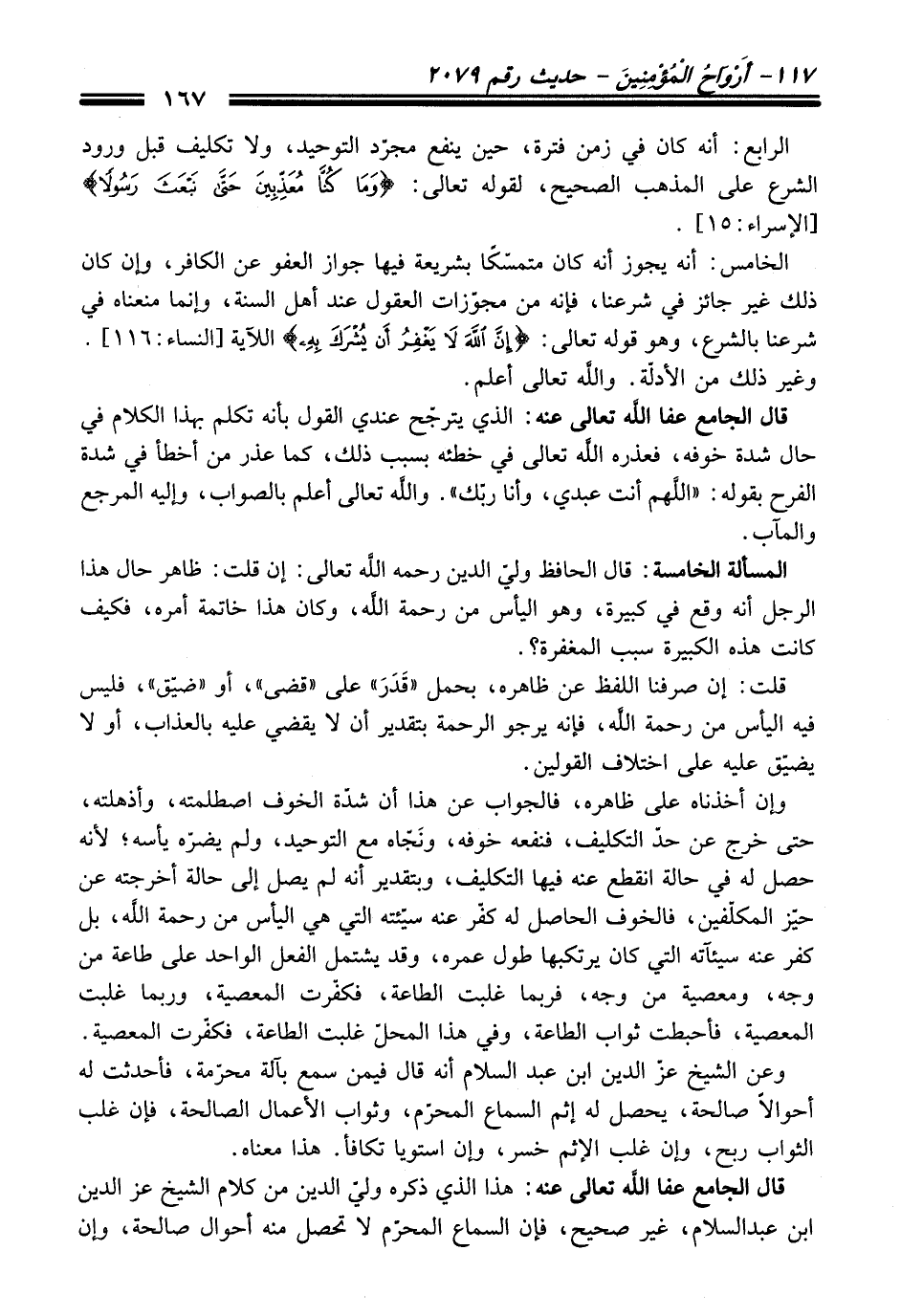 قال الجامع - عفا اللَّه تعالى عنه -: هذا الذي ذكره وليّ الدين من كلام الشيخ عز الدين ابن عبدالسلام، غير صحيح، فإن السماع المحرّم لا تحصل منه أحوال صالحة، وإن