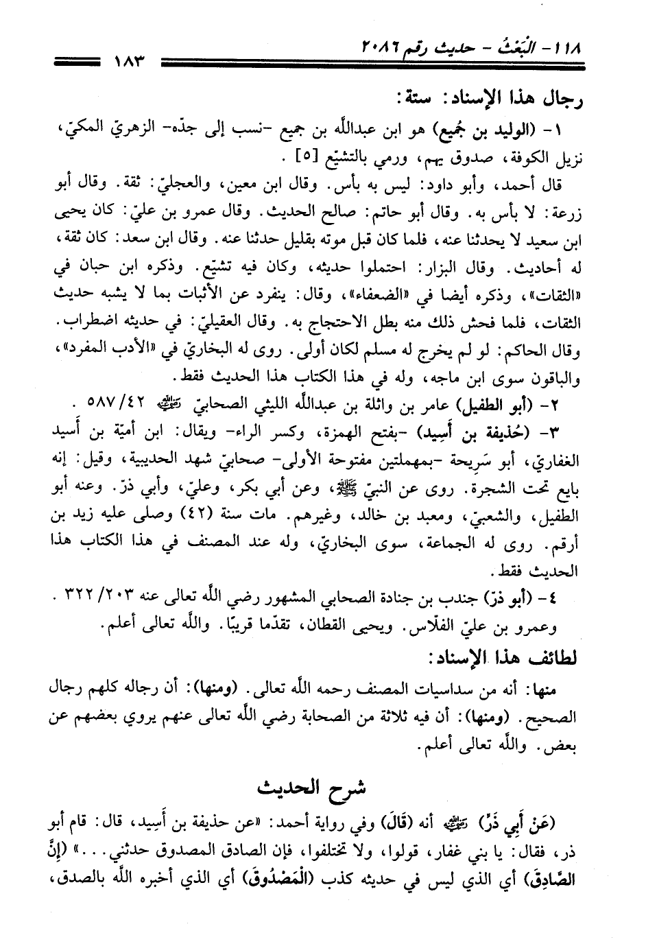 4 - (أبو ذرّ) جندب بن جنادة الصحابي المشهور - رضي اللَّه تعالى عنه - 203/ 322. وعمرو بن علي الفلّاس. ويحيى القطان، تقدّما قريبًا. واللَّه تعالى أعلم.