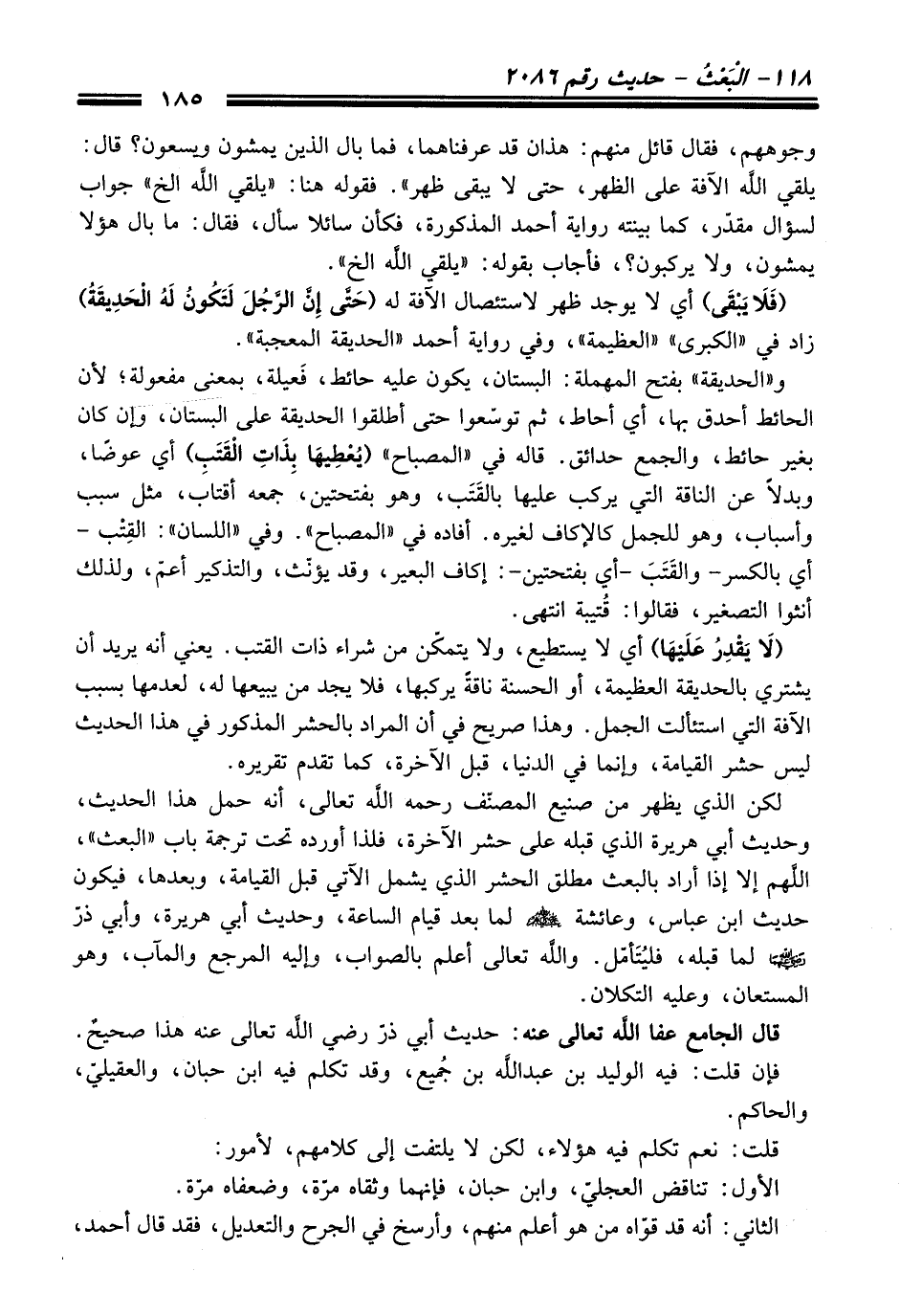 (لَا يَقْدِرُ عَلَيْهَا) أي لا يستطيع، ولا يتمكّن من شراء ذات القتب. يعني أنه يريد أن يشتري بالحديقة العظيمة، أو الحسنة ناقةً يركبها، فلا يجد من يبيعها له، لعدمها بسبب الآفة التي استئألت الجمل. وهذا صريح في أن المراد بالحشر المذكور في هذا الحديث ليس حشر القيامة، وإنما في الدنيا، قبل الآخرة، كما تقدم تقريره.