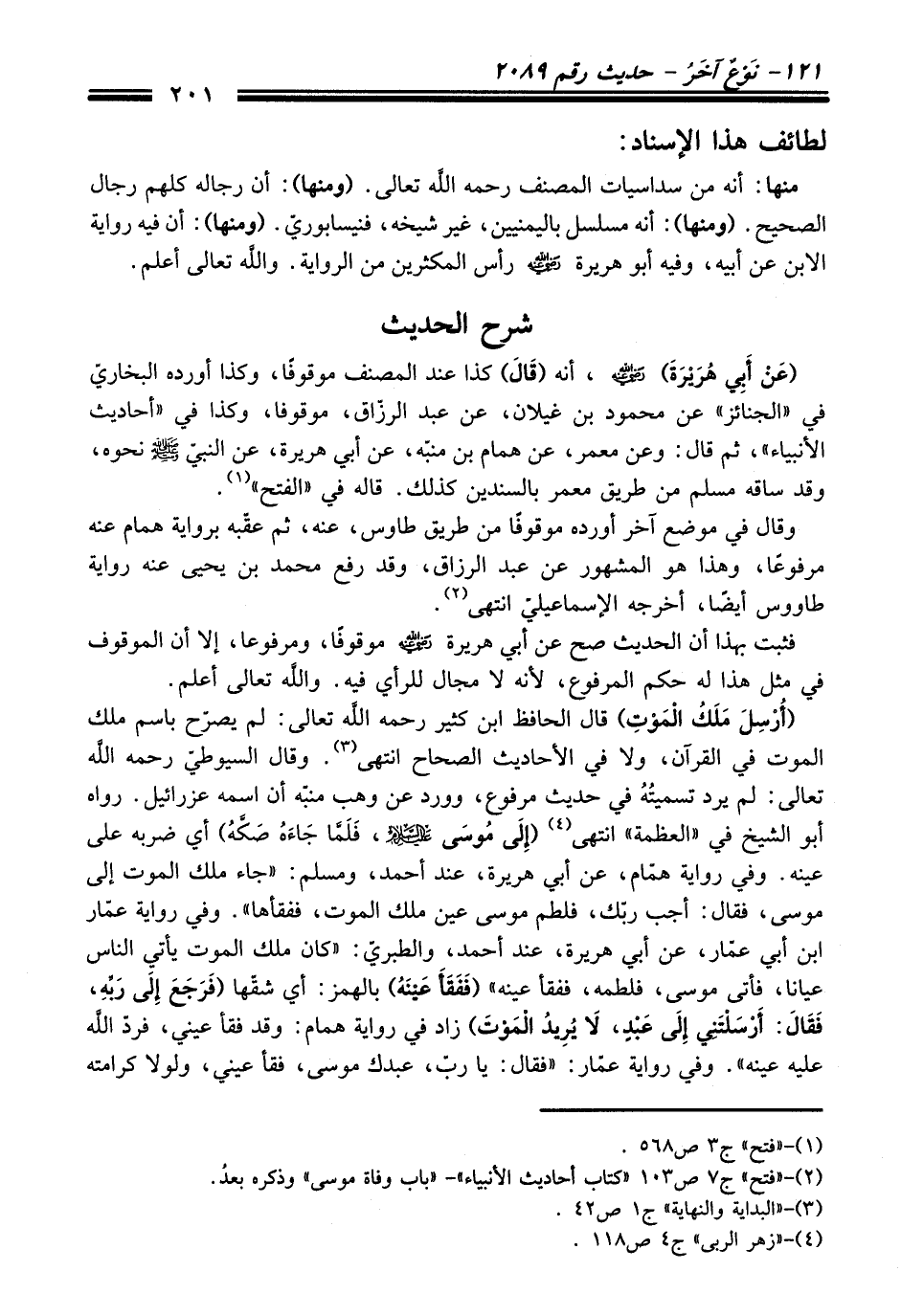 فثبت بهذا أن الحديث صح عن أبي هريرة - رضي اللَّه عنه - موقوفًا، ومرفوعا، إلا أن الموقوف في مثل هذا له حكم المرفوع، لأنه لا مجال للرأي فيه. واللَّه تعالى أعلم.
