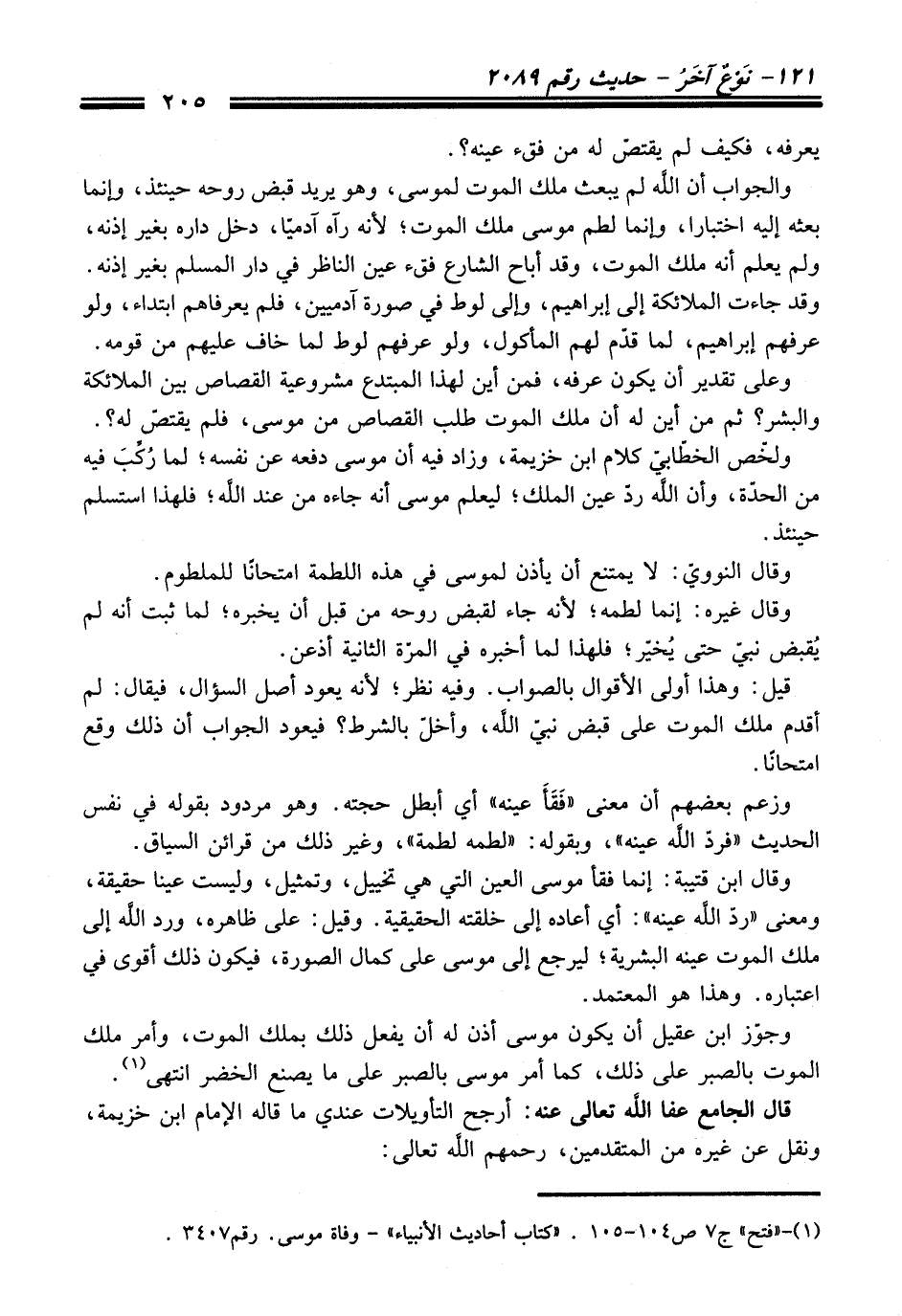 (¬1) - "فتح" ج 7 ص 104 - 105. "كتاب أحاديث الأنبياء" - وفاة موسى. رقم 3407.