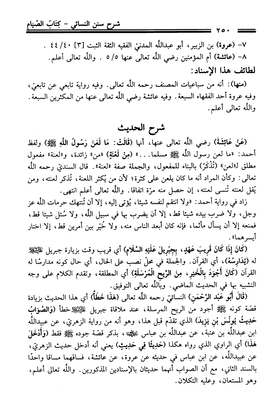 (عَنْ عَائِشَةَ) - رضي اللَّه تعالى عنها -، أنها (قَالَتْ: مَا لَعَنَ رَسُولُ اللَّهِ - صلى اللَّه عليه وسلم -) ولفظ أحمد: "ما لعن رسول اللَّه - صلى اللَّه عليه وسلم - مسلما ... " (مِنْ لَعْنَةٍ) "من" زائدة، و"لعنة" مفعول مطلق لـ "لعن" (تُذْكَرُ) بالبناء للمفعول، والجملة صفة "لعنة". قال السنديّ -رَحِمَهُ اللَّهُ- تعالى: وكأن المراد أنه ما كان يلعن على كثرة؛ لأن من يُكثر اللعنة، تُذكر لعنته، ومن يُقل لعنته تُنسى لعنته، إن حصل منه مرّة اتفاقا. واللَّه تعالى أعلم انتهى.