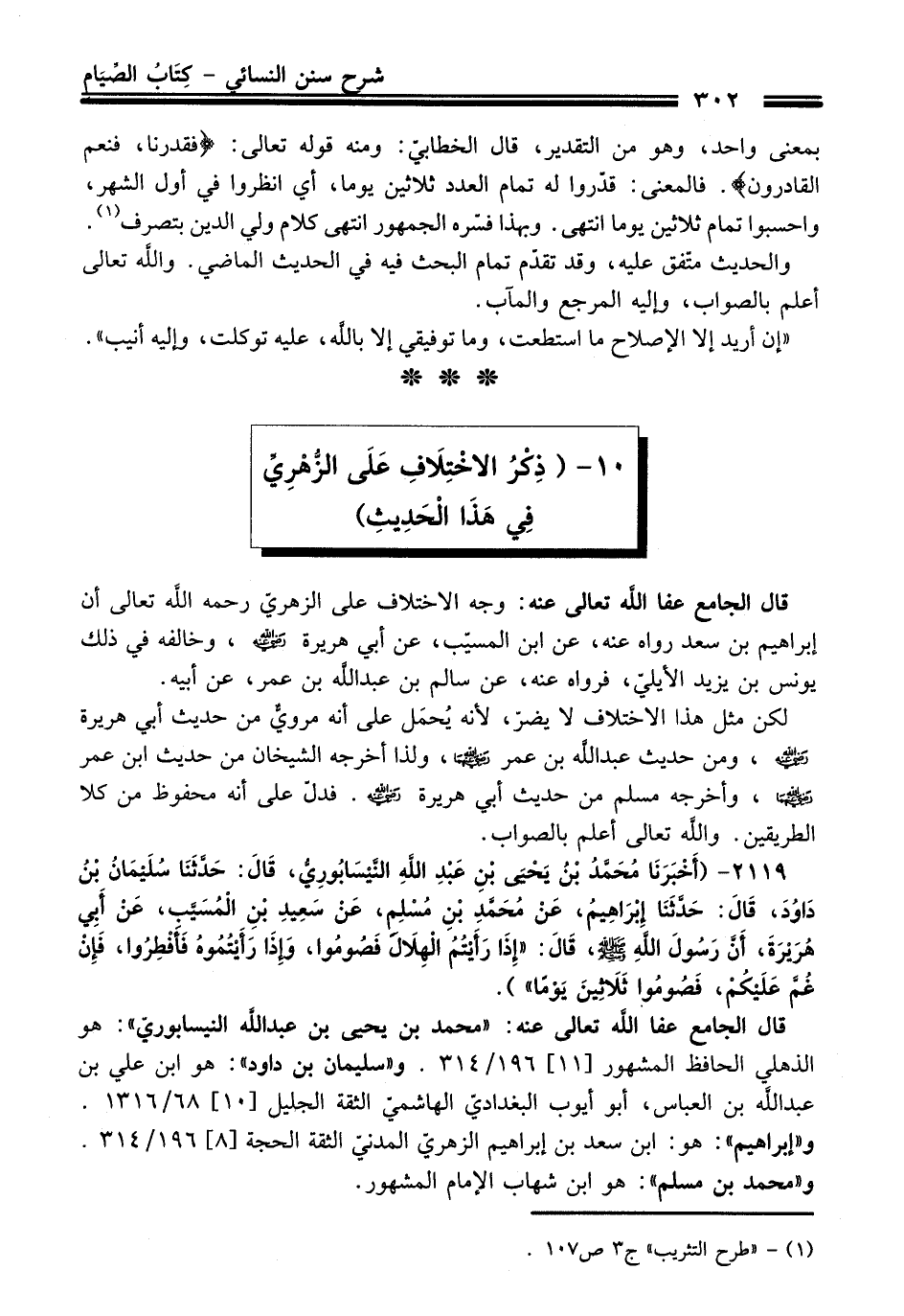 قال الجامع - عفا اللَّه تعالى عنه -: وجه الاختلاف على الزهريّ -رحمه اللَّه تعالى- أن إبراهيم بن سعد رواه عنه، عن ابن المسيّب، عن أبي هريرة - رضي اللَّه عنه -، وخالفه في ذلك يونس بن يزيد الأيليّ، فرواه عنه، عن سالم بن عبد اللَّه بن عمر، عن أبيه.