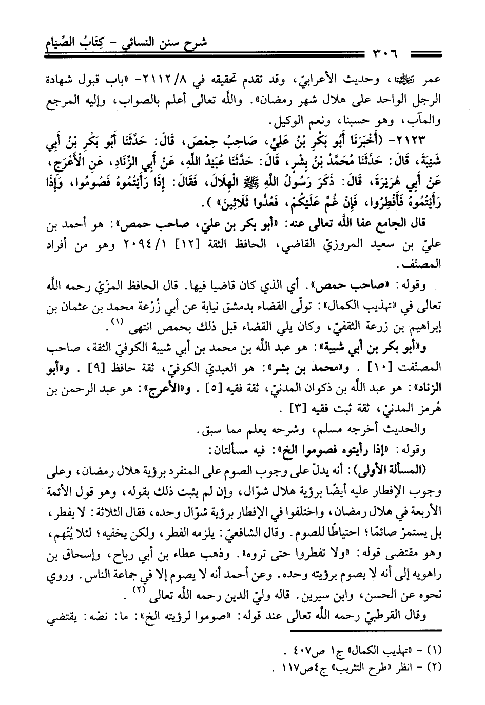 2123 - (أَخْبَرَنَا أَبُو بَكْرِ بْنُ عَلِيٍّ, صَاحِبُ حِمْصَ, قَالَ: حَدَّثَنَا أَبُو بَكْرِ بْنُ أَبِي شَيْبَةَ, قَالَ: حَدَّثَنَا مُحَمَّدُ بْنُ بِشْرٍ, قَالَ: حَدَّثَنَا عُبَيْدُ اللَّهِ, عَنْ أَبِي الزِّنَادِ, عَنِ الأَعْرَجِ, عَنْ أَبِي هُرَيْرَةَ, قَالَ: ذَكَرَ رَسُولُ اللَّهِ - صلى اللَّه عليه وسلم - الْهِلاَلَ, فَقَالَ: «إِذَا رَأَيْتُمُوهُ فَصُومُوا, وَإِذَا رَأَيْتُمُوهُ فَأَفْطِرُوا, فَإِنْ غُمَّ عَلَيْكُمْ, فَعُدُّوا ثَلاَثِينَ»).