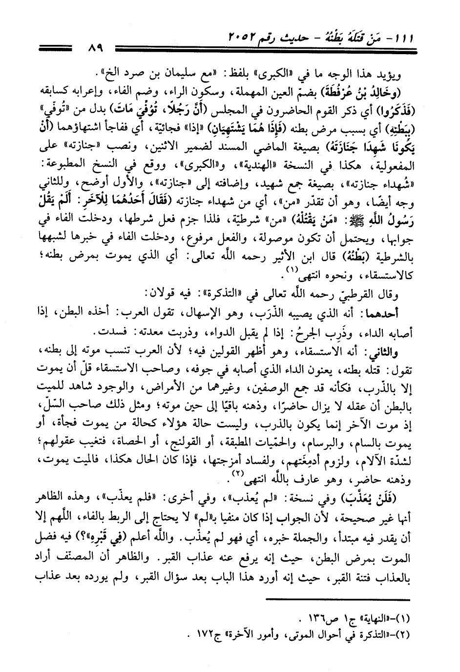 (¬2) - "التذكرة في أحوال الموتى، وأمور الآخرة" ج 172.