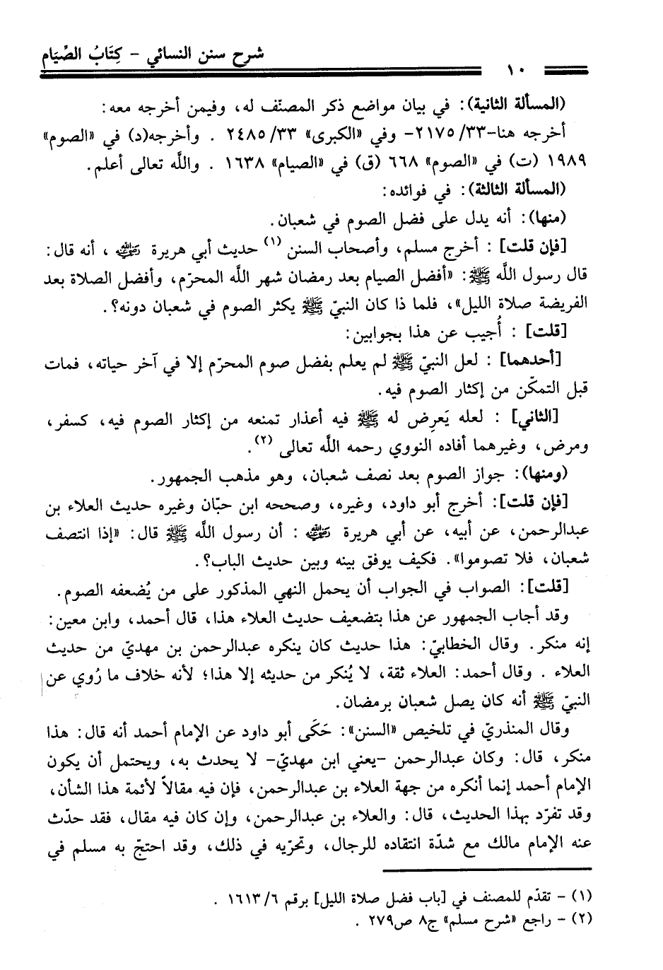 وقد أجاب الجمهور عن هذا بتضعيف حديث العلاء هذا، قال أحمد، وابن معين: إنه منكر. وقال الخطابيّ: هذا حديث كان ينكره عبد الرحمن بن مهديّ من حديث العلاء. وقال أحمد: العلاء ثقة، لا يُنكر من حديثه إلا هذا؛ لأنه خلاف ما رُوي عن النبيّ - صلى اللَّه عليه وسلم - أنه كان يصل شعبان برمضان.