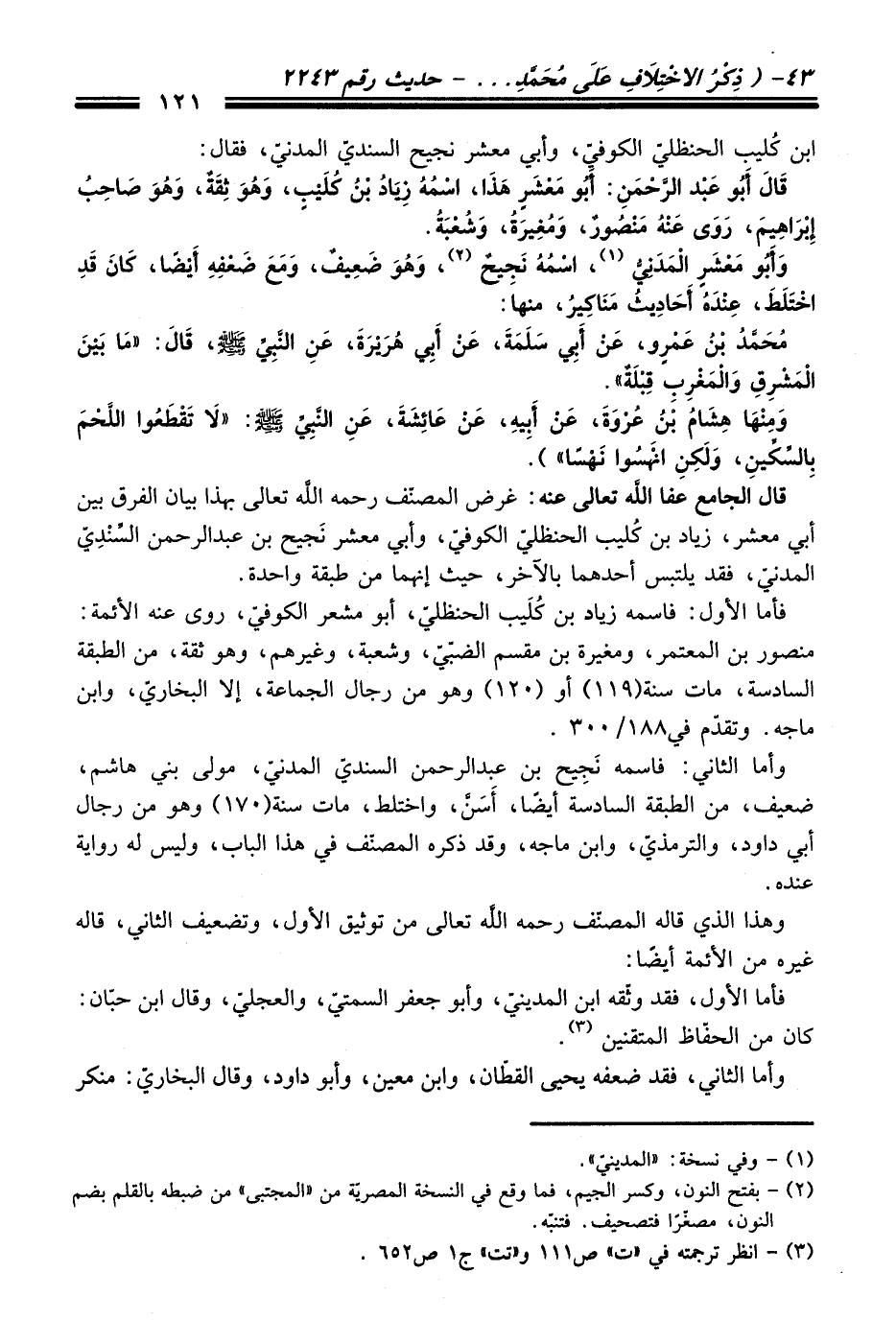 ابن كُليب الحنظليّ الكوفيّ، وأبي معشر نجيح السنديّ المدنيّ، فقال: