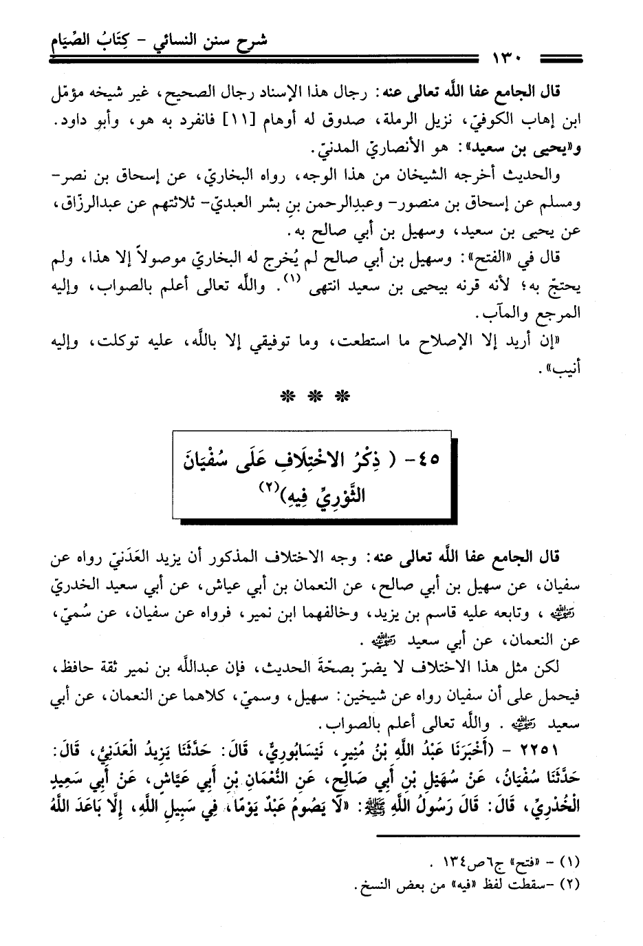 45 - (ذِكْرُ الاخْتِلَافِ عَلَى سُفْيَانَ الثَّوْرِيِّ فِيهِ) (¬2)
