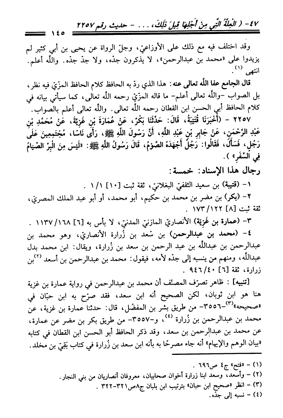 قال الجامع - عفا اللَّه تعالى عنه -: هذا الذي ردّ به الحافظ كلام الحافظ المزّيّ فيه نظر، بل الصواب -واللَّه تعالى أعلم- ما قاله المزّيّ -رحمه اللَّه تعالى-، كما سيأتي بيانه في كلام الحافظ أبي الحسن ابن القطّان -رحمه اللَّه تعالى-. واللَّه تعالى أعلم بالصواب.