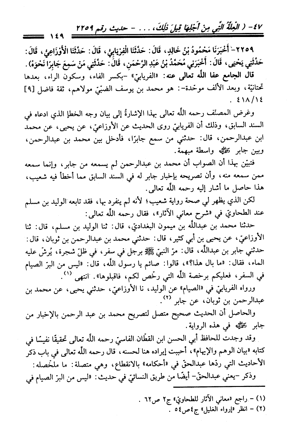 2259 - (أَخْبَرَنَا مَحْمُودُ بْنُ خَالِدٍ, قَالَ: حَدَّثَنَا الْفِرْيَابِيُّ, قَالَ: حَدَّثَنَا الأَوْزَاعِيُّ, قَالَ: حَدَّثَنِي يَحْيَى, قَالَ: أَخْبَرَنِي مُحَمَّدُ بْنُ عَبْدِ الرَّحْمَنِ, قَالَ: حَدَّثَنِي مَنْ سَمِعَ جَابِرًا نَحْوَهُ).