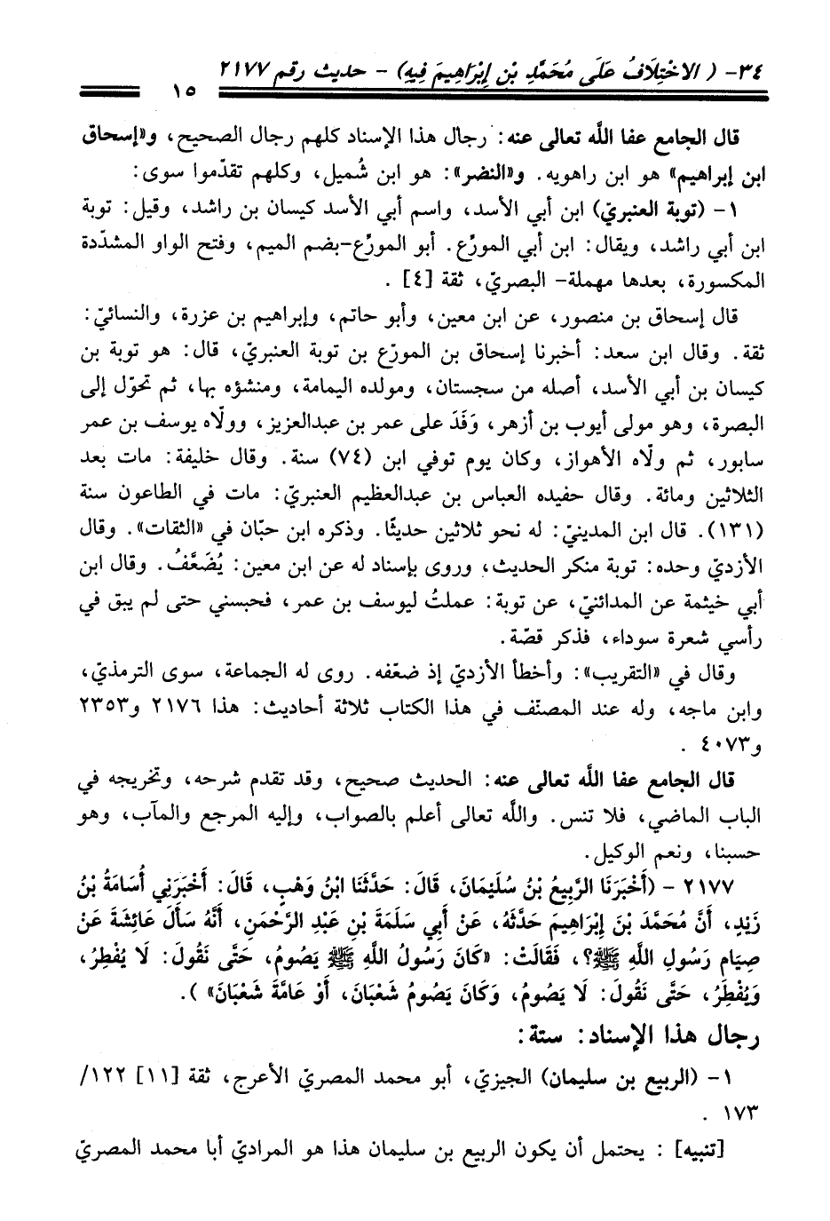 قال الجامع - عفا اللَّه تعالى عنه -: رجال هذا الإسناد كلهم رجال الصحيح، و"إسحاق ابن إبراهيم" هو ابن راهويه. و"النضر": هو ابن شُميل، وكلهم تقدّموا سوى:
