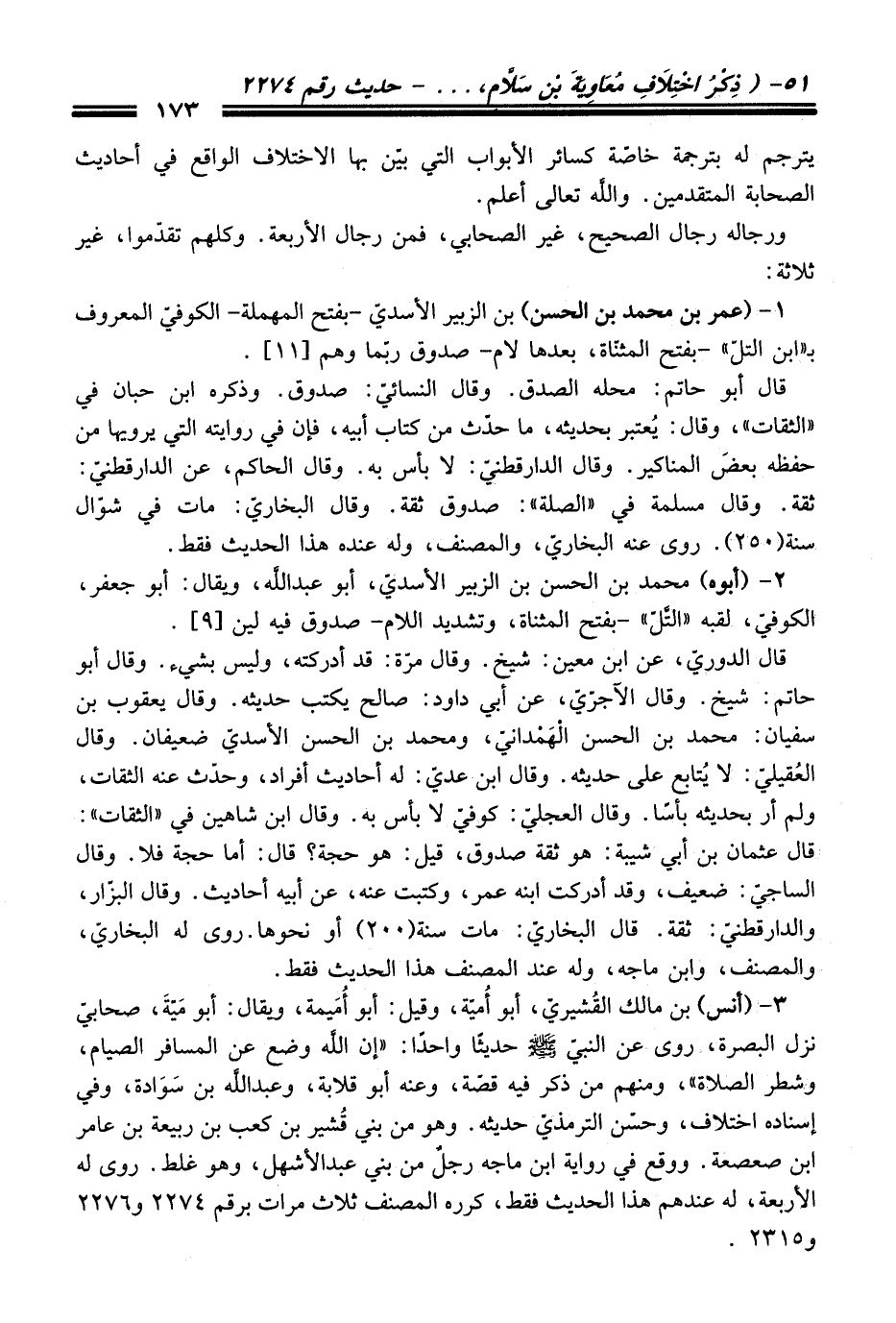 1 - (عمر بن محمد بن الحسن) بن الزبير الأسديّ -بفتح المهملة- الكوفيّ المعروف بـ"ابن التلّ" -بفتح المثنّاة، بعدها لام- صدوق ربّما وهم [11].