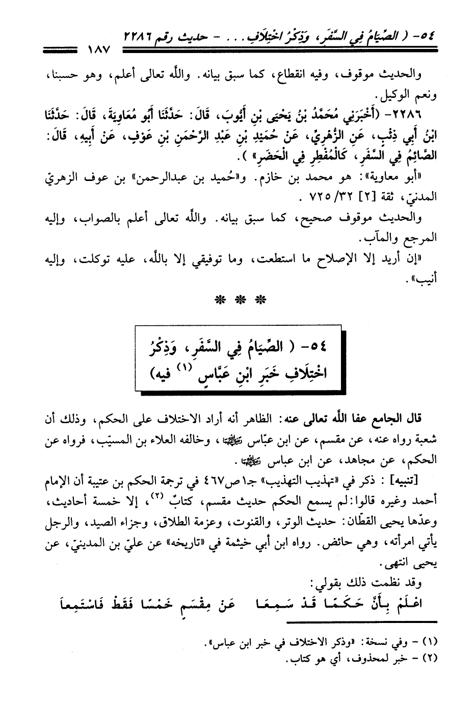 54 - (الصِّيَامُ فِي السَّفَرِ، وَذِكْرُ اخْتِلَافِ خَبَرِ ابْنِ عَبَّاسٍ (¬1) فيه)