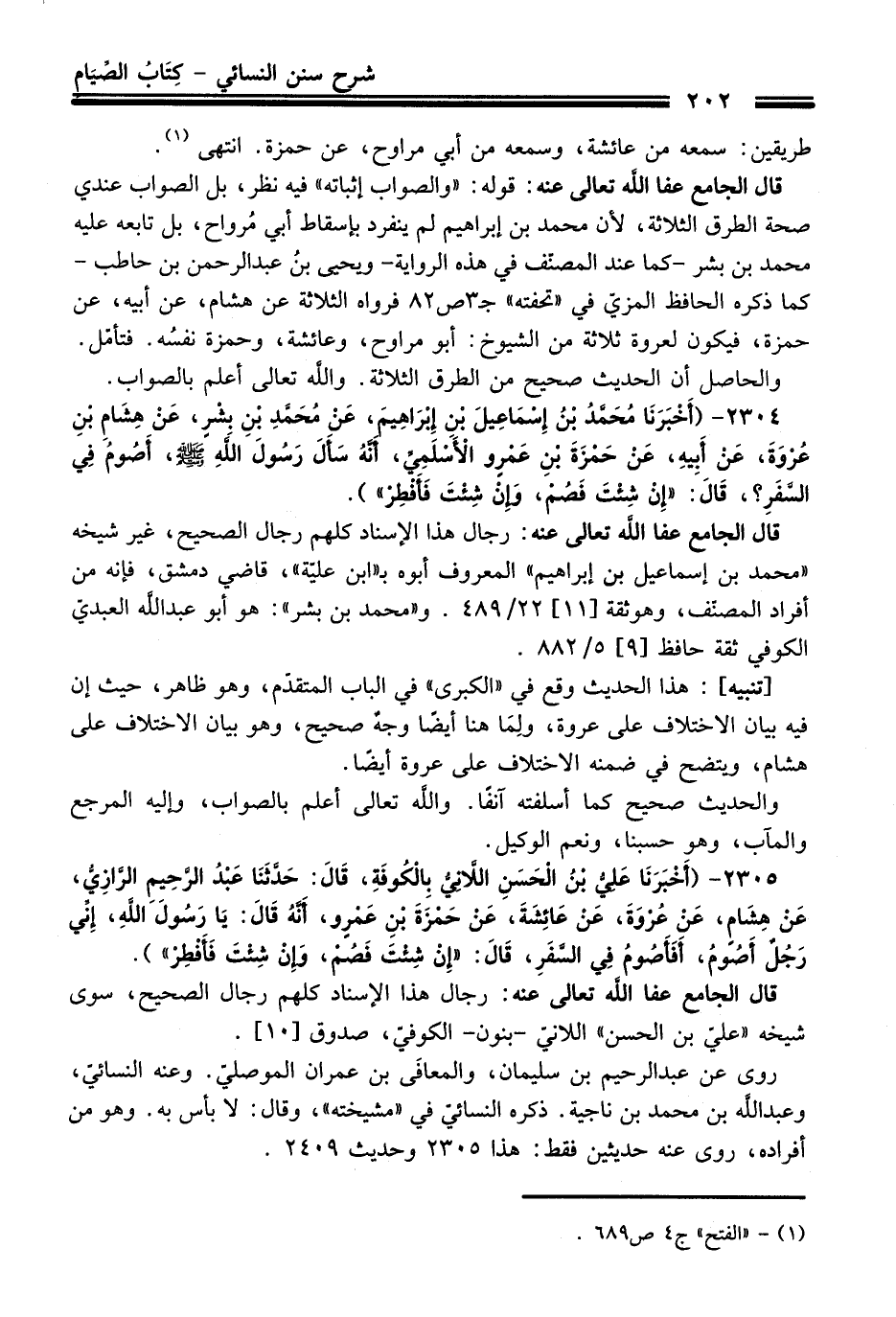 2305 - (أَخْبَرَنَا عَلِيُّ بْنُ الْحَسَنِ اللاَّنِيُّ بِالْكُوفَةِ, قَالَ: حَدَّثَنَا عَبْدُ الرَّحِيمِ الرَّازِيُّ, عَنْ هِشَامٍ, عَنْ عُرْوَةَ, عَنْ عَائِشَةَ, عَنْ حَمْزَةَ بْنِ عَمْرٍو, أَنَّهُ قَالَ: يَا رَسُولَ اللَّهِ, إِنِّي رَجُلٌ أَصُومُ, أَفَأَصُومُ فِي السَّفَرِ, قَالَ: «إِنْ شِئْتَ فَصُمْ, وَإِنْ شِئْتَ فَأَفْطِرْ»).