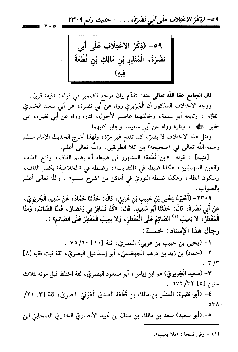 59 - (ذِكْرُ الاخْتِلَافِ عَلَى أَبِي نَضْرَةَ، الْمُنْذِرِ بْنِ مَالِكِ بْنِ قُطَعَةَ فِيهِ)