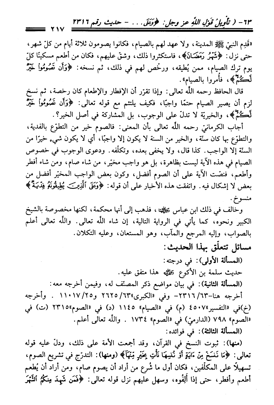 أخرجه هنا-63/ 2316 - وفي "الكبرى" 63/ 2625 و 25/ 11017. وأخرجه (خ) في "التفسير" 4507 (م) في "الصيام" 1145 (د) في "الصوم" 2315 (ت) في "الصوم" 798 (الدارميّ) في "الصوم" 1734. واللَّه تعالى أعلم.