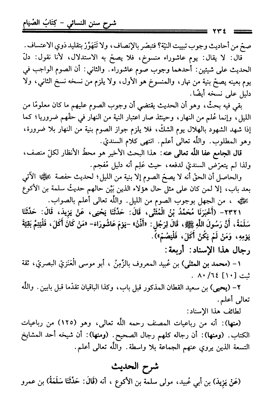 2321 - (أَخْبَرَنَا مُحَمَّدُ بْنُ الْمُثَنَّى, قَالَ: حَدَّثَنَا يَحْيَى, عَنْ يَزِيدَ, قَالَ: حَدَّثَنَا سَلَمَةُ أَنَّ رَسُولَ اللَّهِ - صلى اللَّه عليه وسلم -, قَالَ لِرَجُلٍ: "أَذِّنْ" -يَوْمَ عَاشُورَاءَ- "مَنْ كَانَ أَكَلَ, فَلْيُتِمَّ بَقِيَّةَ يَوْمِهِ, وَمَنْ لَمْ يَكُنْ أَكَلَ, فَلْيَصُمْ").