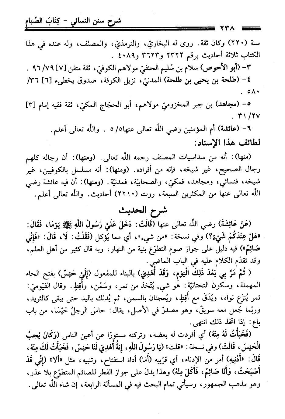 (منها): أنه من سداسيات المصنف -رحمه اللَّه تعالى-. (ومنها): أن رجاله كلهم رجال الصحيح، غير شيخه، فإنه من أفراده. (ومنها): أنه مسلسل بالكوفيين، غير شيخه، فنسائي، ومجاهد، فمكيّ، والصحابية، فمدنيّة. (ومنها): أن فيه عائشة - رضي اللَّه تعالى عنها - من المكثرين السبعة، روت (2210) أحاديث. واللَّه تعالى أعلم.