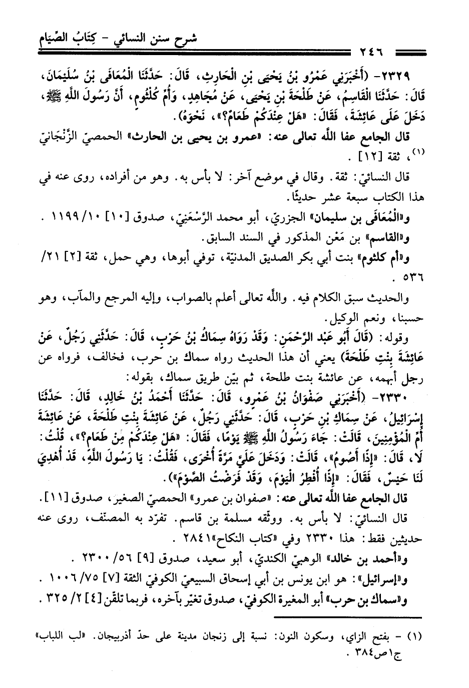قال الجامع - عفا اللَّه تعالى عنه -: "صفوان بن عمرو" الحمصيّ الصغير، صدوق [11]. قال النسائيّ: لا بأس به. ووثّقه مسلمة بن قاسم. تفرّد به المصنّف، روى عنه حديثين فقط: هذا 2330 وفي "كتاب النكاح" 2841.