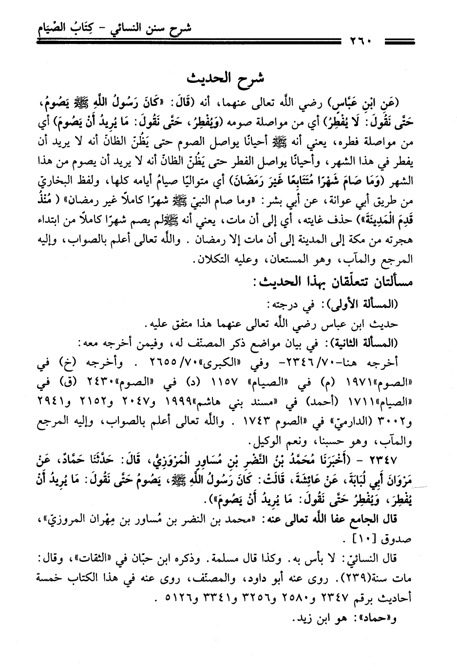 2347 - (أَخْبَرَنَا مُحَمَّدُ بْنُ النَّضْرِ بْنِ مُسَاوِرٍ الْمَرْوَزِيُّ, قَالَ: حَدَّثَنَا حَمَّادٌ, عَنْ مَرْوَانَ أَبِي لُبَابَةَ, عَنْ عَائِشَةَ, قَالَتْ: كَانَ رَسُولُ اللَّهِ - صلى اللَّه عليه وسلم -, يَصُومُ حَتَّى نَقُولَ: مَا يُرِيدُ أَنْ يُفْطِرَ, وَيُفْطِرُ حَتَّى نَقُولَ: مَا يُرِيدُ أَنْ يَصُومَ).