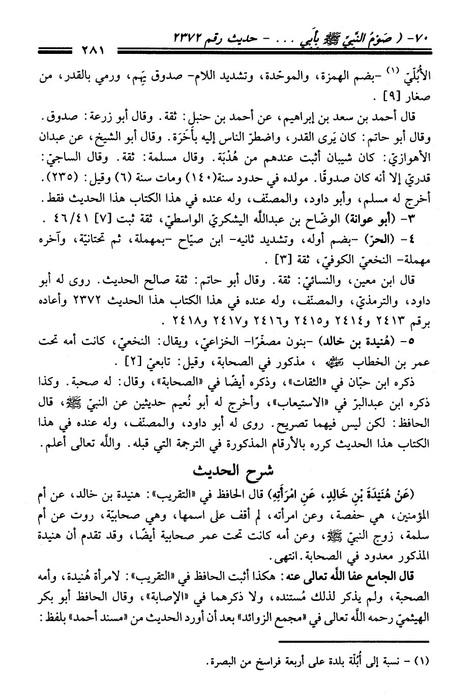 قال الجامع - عفا اللَّه تعالى عنه -: هكذا أثبت الحافظ في "التقريب": لامرأة هُنيدة، وأمه الصحبة، ولم يذكر لذلك مُستنده، ولا ذكرهما في "الإصابة"، وقال الحافظ أبو بكر الهيثميّ -رحمه اللَّه تعالى- في "مجمع الزوائد" بعد أن أورد الحديث من "مسند أحمد" بلفظ: