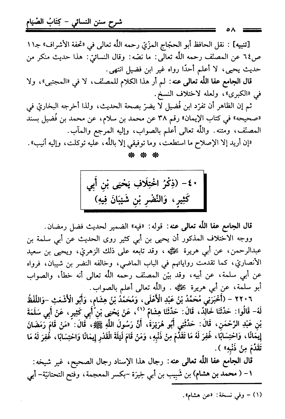 40 - (ذِكْرُ اخْتِلَافِ يَحْيَى بْنِ أَبِي كَثِيرٍ، وَالنَّضْرِ بْنِ شَيْبَانَ فِيهِ)