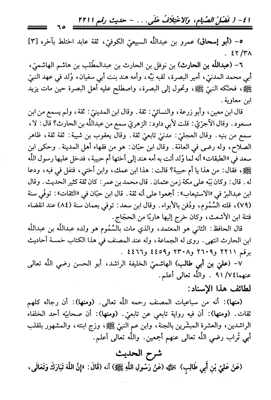(عَنْ عَليِّ بْنِ أَبِي طَالِبٍ) - رضي اللَّه عنه - (عَنْ رَسُولِ اللَّهِ - صلى اللَّه عليه وسلم -) أنه (قَالَ: "إِنَّ اللَّه تَبَارَكَ وَتَعَالَى،