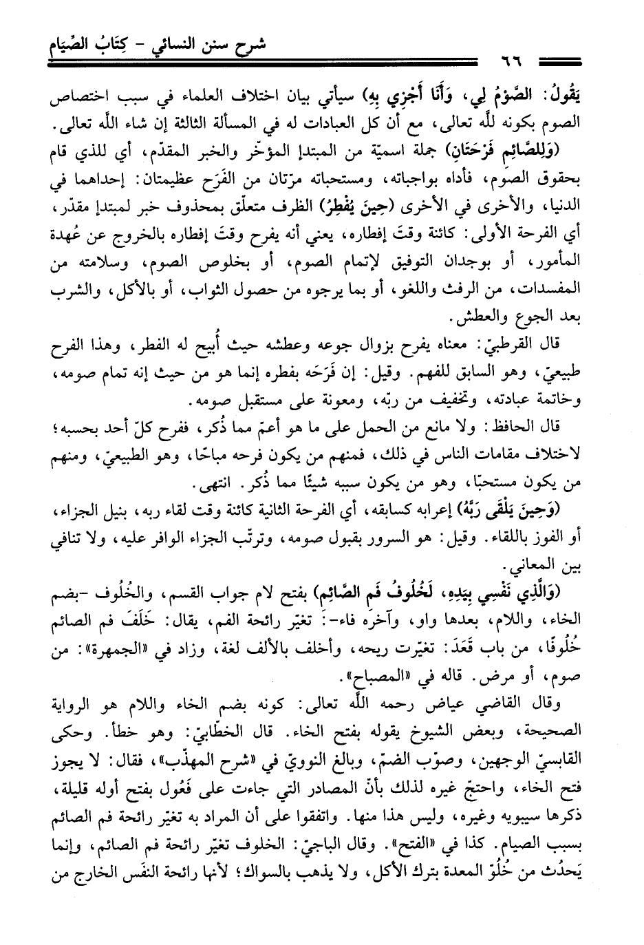 وقال القاضي عياض -رحمه اللَّه تعالى-: كونه بضم الخاء واللام هو الرواية الصحيحة، وبعض الشيوخ يقوله بفتح الخاء. قال الخطّابيّ: وهو خطأ. وحكى القابسيّ الوجهين، وصوّب الضمّ، وبالغ النوويّ في "شرح المهذب"، فقال: لا يجوز فتح الخاء، واحتجّ غيره لذلك بأنّ المصادر التي جاءت على فَعُول بفتح أوله قليلة، ذكرها سيبويه وغيره، وليس هذا منها. واتفقوا على أن المراد به تغيّر رائحة فم الصائم بسبب الصيام. كذا في "الفتح". وقال الباجيّ: الخلوف تغيّر رائحة فم الصائم، وإنما يَحدُث من خُلُو المعدة بترك الأكل، ولا يذهب بالسواك؛ لأنها رائحة النفَس الخارج من