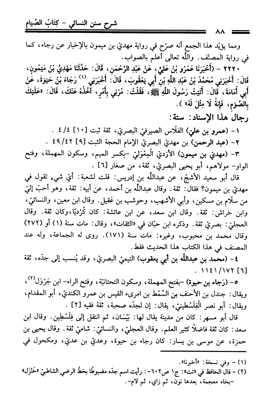 2220 - (أَخْبَرَنَا عَمْرُو بْنُ عَلِيٍّ, عَنْ عَبْدِ الرَّحْمَنِ, قَالَ: حَدَّثَنَا مَهْدِيُّ, بْنُ مَيْمُونٍ, قَالَ: أَخْبَرَنِي مُحَمَّدُ بْنُ عَبْدِ اللَّهِ بْنِ أَبِي يَعْقُوبَ, قَالَ: أَخْبَرَنِي (¬1) رَجَاءُ بْنُ حَيْوَةَ, عَنْ أَبِي أُمَامَةَ, قَالَ: أَتَيْتُ رَسُولَ اللَّهِ - صلى اللَّه عليه وسلم -, فَقُلْتُ مُرْنِي بِأَمْرٍ, آخُذُهُ عَنْكَ, قَالَ: «عَلَيْكَ بِالصَّوْمِ, فَإِنَّهُ لاَ مِثْلَ لَهُ»).