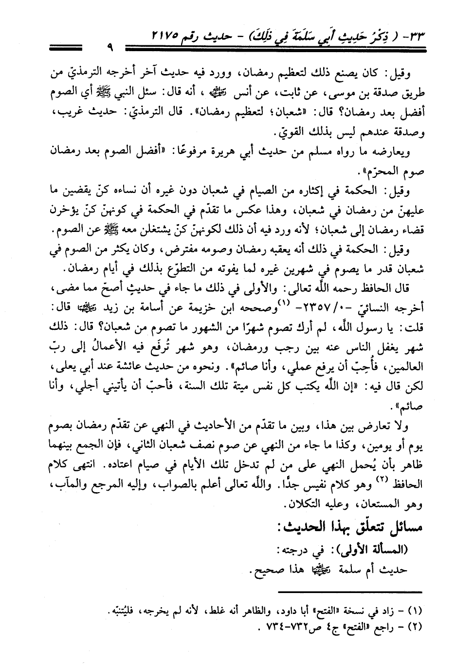 ولا تعارض بين هذا، وبين ما تقدّم من الأحاديث في النهي عن تقدّم رمضان بصوم يوم أو يومين، وكذا ما جاء من النهي عن صوم نصف شعبان الثاني، فإن الجمع بينهما ظاهر بأن يُحمل النهي على من لم تدخل تلك الأيام في صيام اعتاده. انتهى كلام الحافظ (¬2) وهو كلام نفيس جدًّا. واللَّه تعالى أعلم بالصواب، وإليه المرجع والمآب، وهو المستعان، وعليه التكلان.