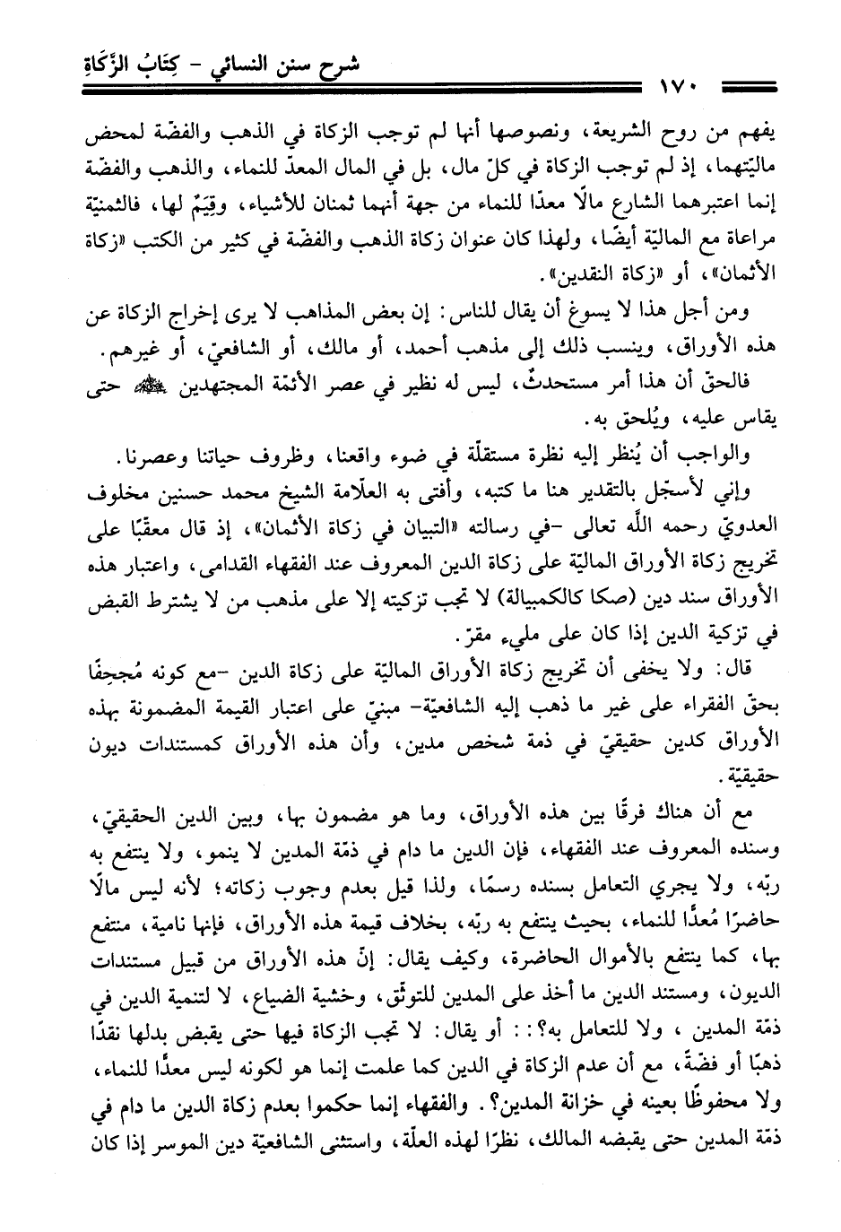 ومن أجل هذا لا يسوغ أن يقال للناس: إن بعض المذاهب لا يرى إخراج الزكاة عن هذه الأوراق، وينسسب ذلك إلى مذهب أحمد، أو مالك، أو الشافعيّ، أو غيرهم.