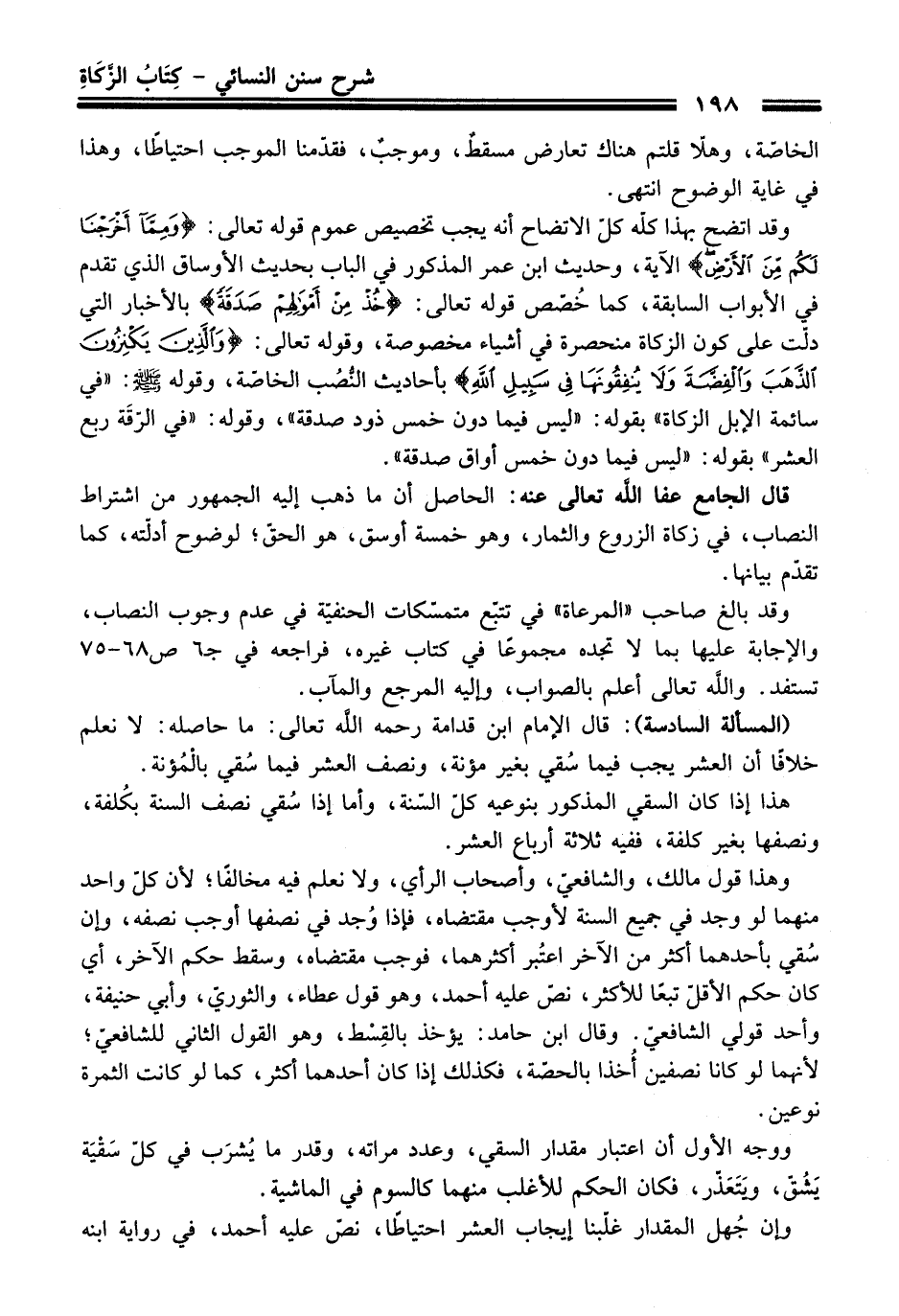 (المسألة السادسة): قال الإمام ابن قدامة -رحمه اللَّه تعالى-: ما حاصله: لا نعلم خلافًا أن العشر يجب فيما سُقي بغير مؤنة، ونصف العشر فيما سُقي بالْمُؤنة.