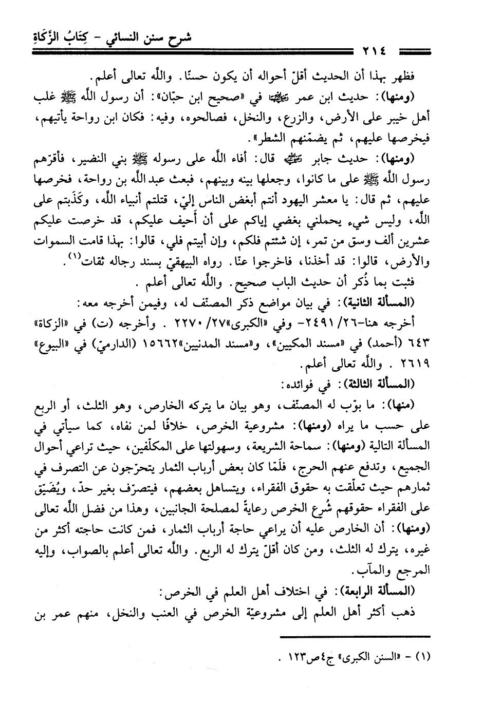 (¬1) - "السنن الكبرى" ج 4 ص 123.