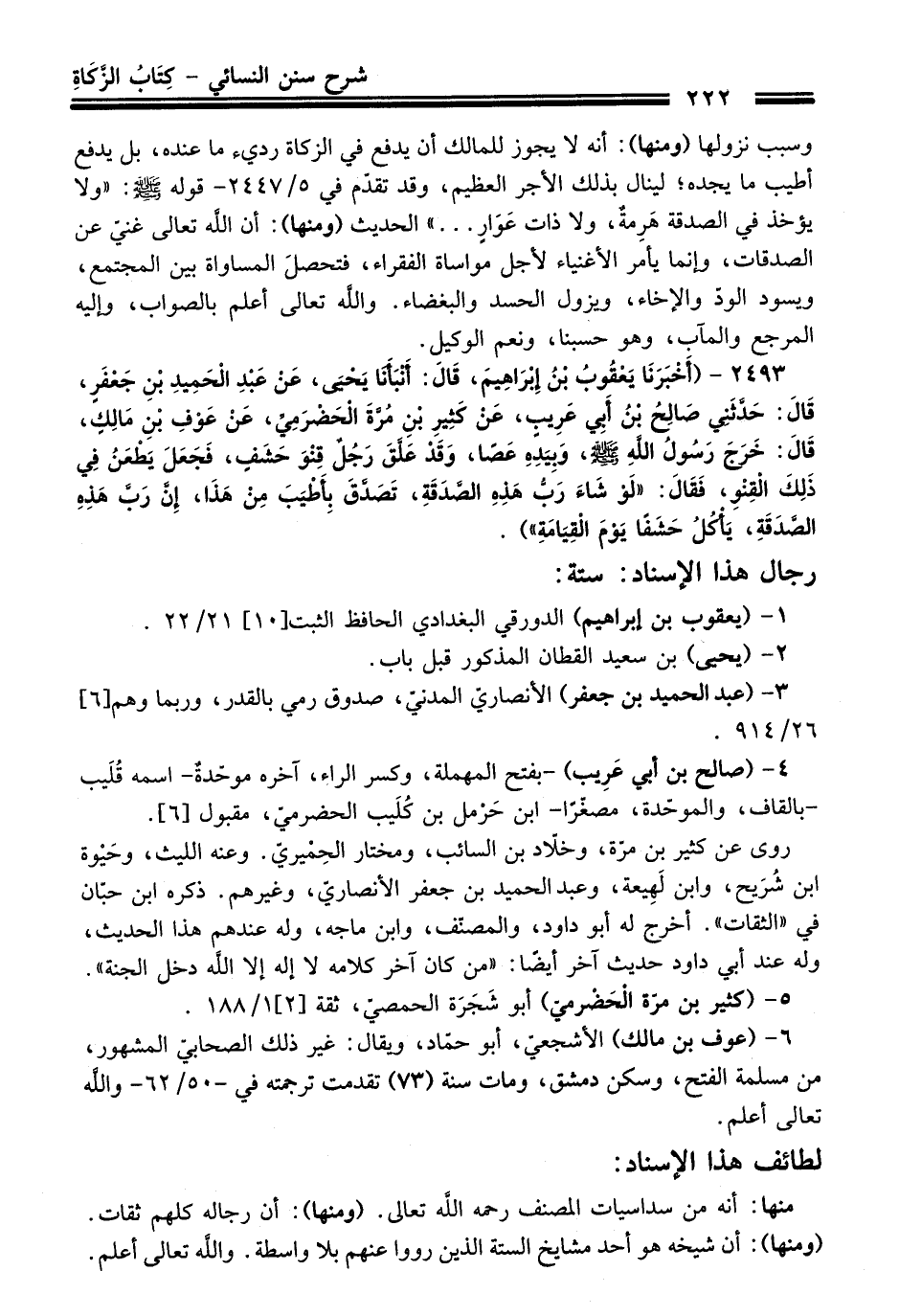 2493 - (أَخْبَرَنَا يَعْقُوبُ بْنُ إِبْرَاهِيمَ, قَالَ: أَنْبَأَنَا يَحْيَى, عَنْ عَبْدِ الْحَمِيدِ بْنِ جَعْفَرٍ, قَالَ: حَدَّثَنِي صَالِحُ بْنُ أَبِي عَرِيبٍ, عَنْ كَثِيرِ بْنِ مُرَّةَ الْحَضْرَمِيِّ, عَنْ عَوْفِ بْنِ مَالِكٍ, قَالَ: خَرَجَ رَسُولُ اللَّهِ - صلى اللَّه عليه وسلم -, وَبِيَدِهِ عَصًا, وَقَدْ عَلَّقَ رَجُلٌ قِنْوَ حَشَفٍ, فَجَعَلَ يَطْعَنُ فِي ذَلِكَ الْقِنْوِ, فَقَالَ: «لَوْ شَاءَ رَبُّ هَذِهِ الصَّدَقَةِ, تَصَدَّقَ بِأَطْيَبَ مِنْ هَذَا, إِنَّ رَبَّ هَذِهِ الصَّدَقَةِ, يَأْكُلُ حَشَفًا يَوْمَ الْقِيَامَةِ»).