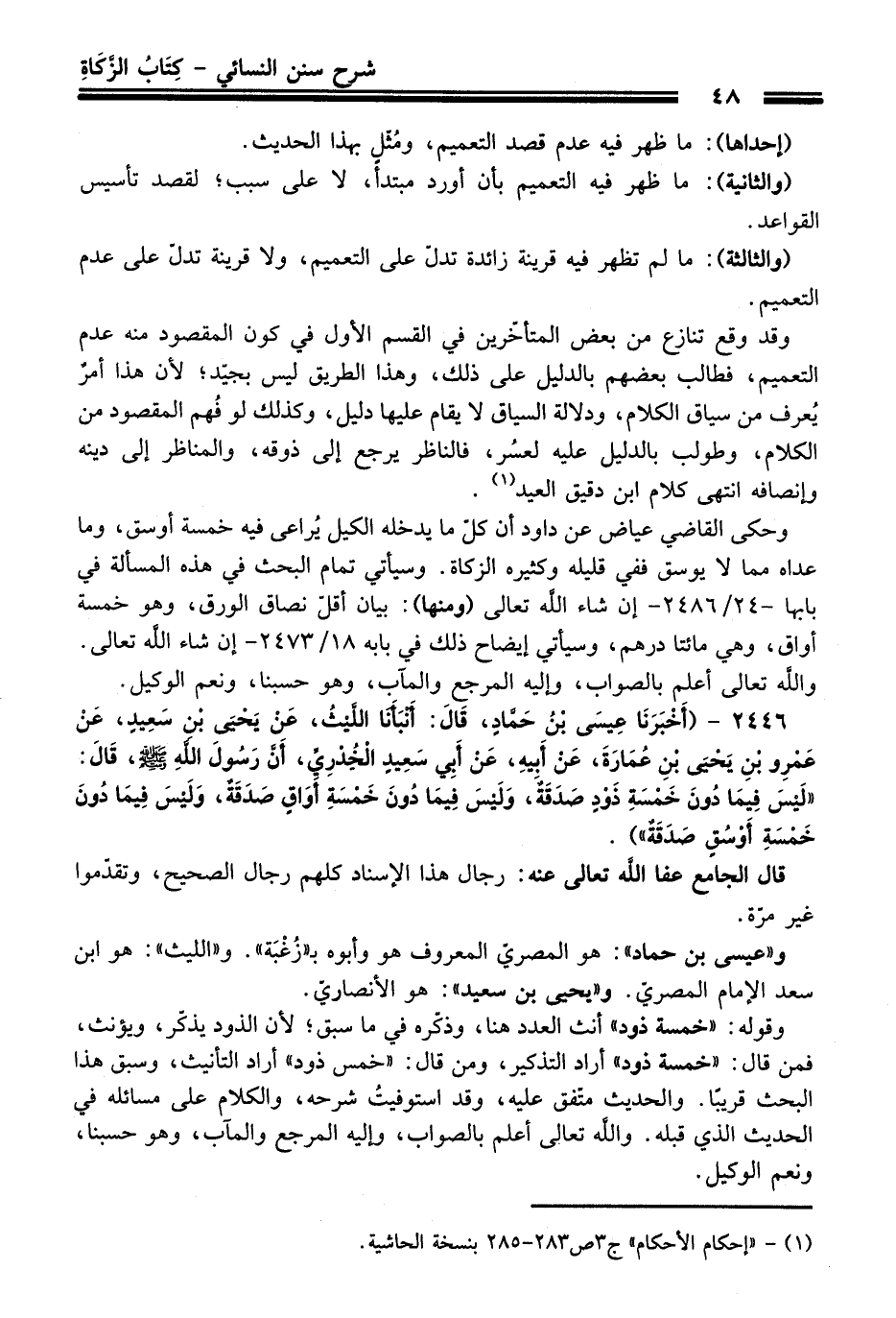 2446 - (أَخْبَرَنَا عِيسَى بْنُ حَمَّادٍ, قَالَ: أَنْبَأَنَا اللَّيْثُ, عَنْ يَحْيَى بْنِ سَعِيدٍ, عَنْ عَمْرِو بْنِ يَحْيَى بْنِ عُمَارَةَ, عَنْ أَبِيهِ, عَنْ أَبِي سَعِيدٍ الْخُدْرِيِّ, أَنَّ رَسُولَ اللَّهِ - صلى اللَّه عليه وسلم -, قَالَ: «لَيْسَ فِيمَا دُونَ خَمْسَةِ ذَوْدٍ صَدَقَةٌ, وَلَيْسَ فِيمَا دُونَ خَمْسَةِ أَوَاقٍ صَدَقَةٌ, وَلَيْسَ فِيمَا دُونَ خَمْسَةِ أَوْسُقٍ صَدَقَةٌ»).