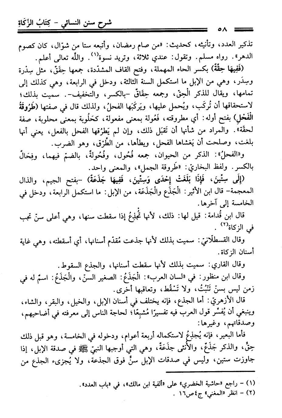 (إِلَى سِتِّينَ، فَإِذَا بَلَغَتْ إِحْدَى وَسِتِّينَ، فَفِيهَا جَذَعَةٌ) -بفتح الجيم، والذال المعجمة- قال ابن الأثير: الْجَذَع والْجَذَعَة، من الإبل: ما استكمل الرابعة، ودخل في الخامسة إلى آخرها.