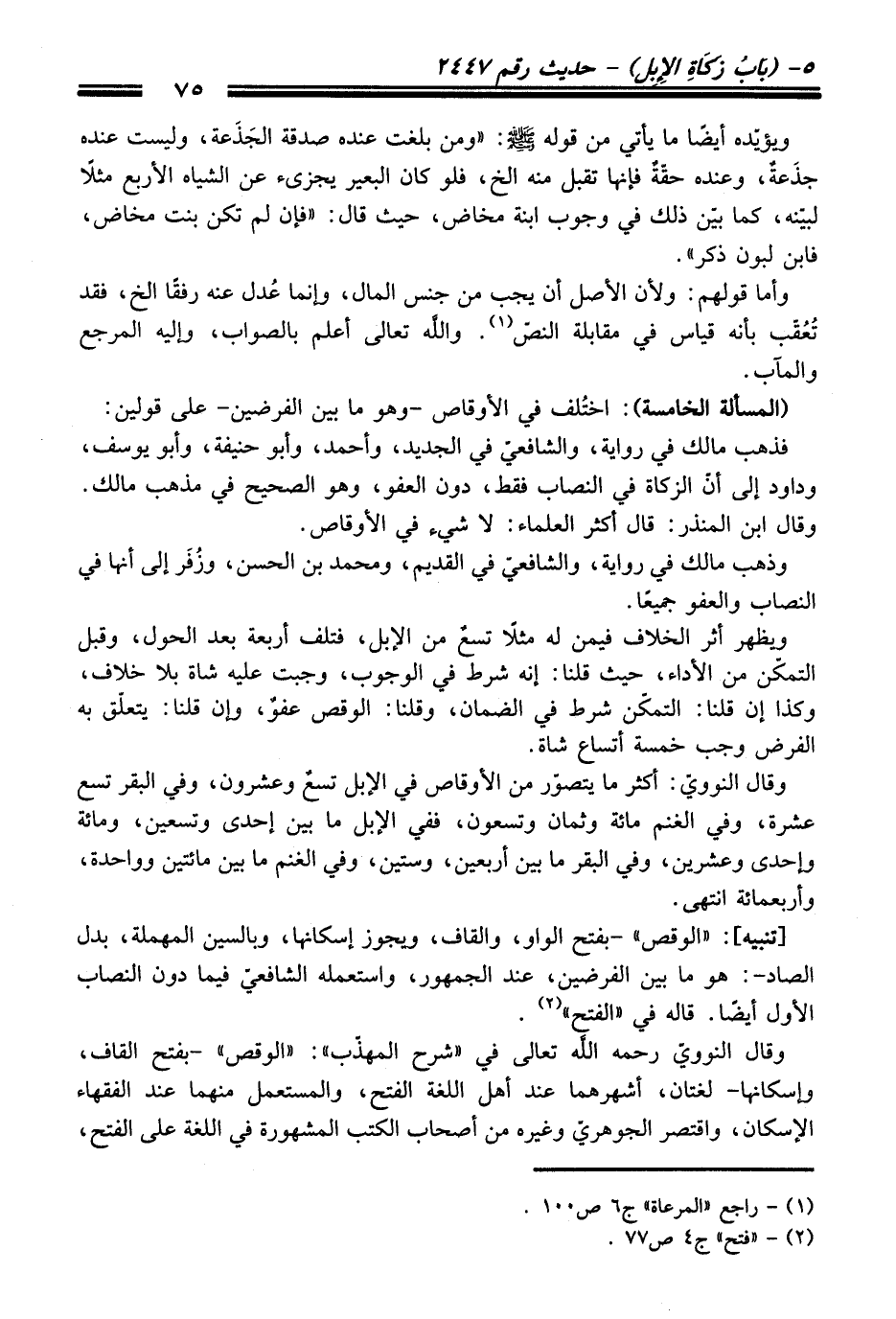 [تنبيه]: "الوقص" -بفتح الواو، والقاف، ويجوز إسكانها، وبالسين المهملة، بدل الصاد-: هو ما بين الفرضين، عند الجمهور، واستعمله الشافعيّ فيما دون النصاب الأول أيضًا. قاله في "الفتح" (¬2).