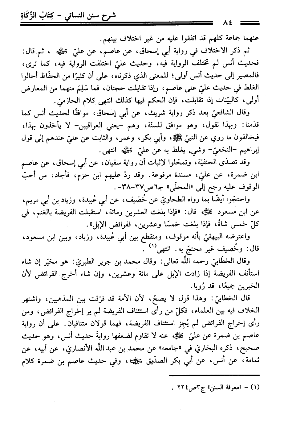 وقد تصدّى الحنفيّة، وتمحّلوا لإثبات أن رواية سفيان، عن أبي إسحاق، عن عاصم ابن ضمرة، عن عليّ، مسندة مرفوعة. وقد ردّ عليهم ابن حزم، فأجاد، من أحبّ الوقوف عليه رجع إلى "المحلّى" جـ6 ص 37 - 38 - .