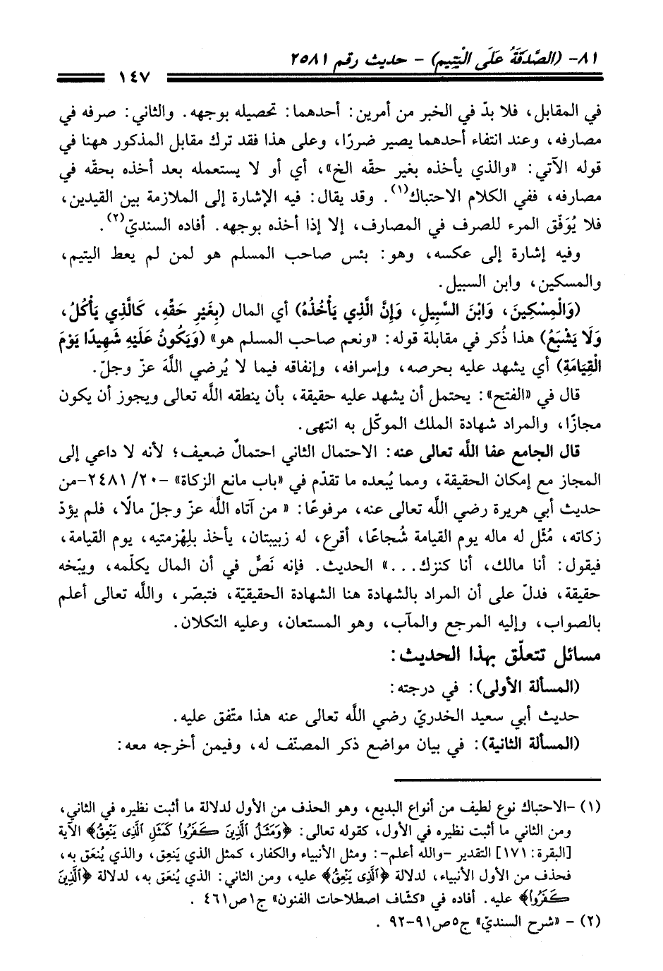 (¬2) - "شرح السنديّ" ج 5 ص 91 - 92.