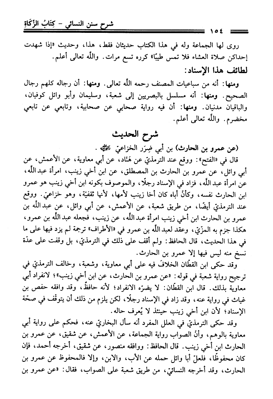 وقد حكى الترمذيّ في العلل المفرد أنه سأل البخاريّ عنه، فحكم على رواية أبي معاوية بالوهم، وأنّ الصواب رواية الجماعة، عن الأعمش، عن شقيق، عن عمرو بن الحارث ابن أخي زينب. قال الحافظ: ووافقه منصور، عن شقيق، أخرجه أحمد، فإن كان محفوظًا، فلعلّ أبا وائل حمله عن الأب، والابن، وإلا فالمحفوظ عن عمرو بن الحارث، وقد أخرجه النسائيّ، من طريق شعبة على الصواب، فقال: "عن عمرو بن