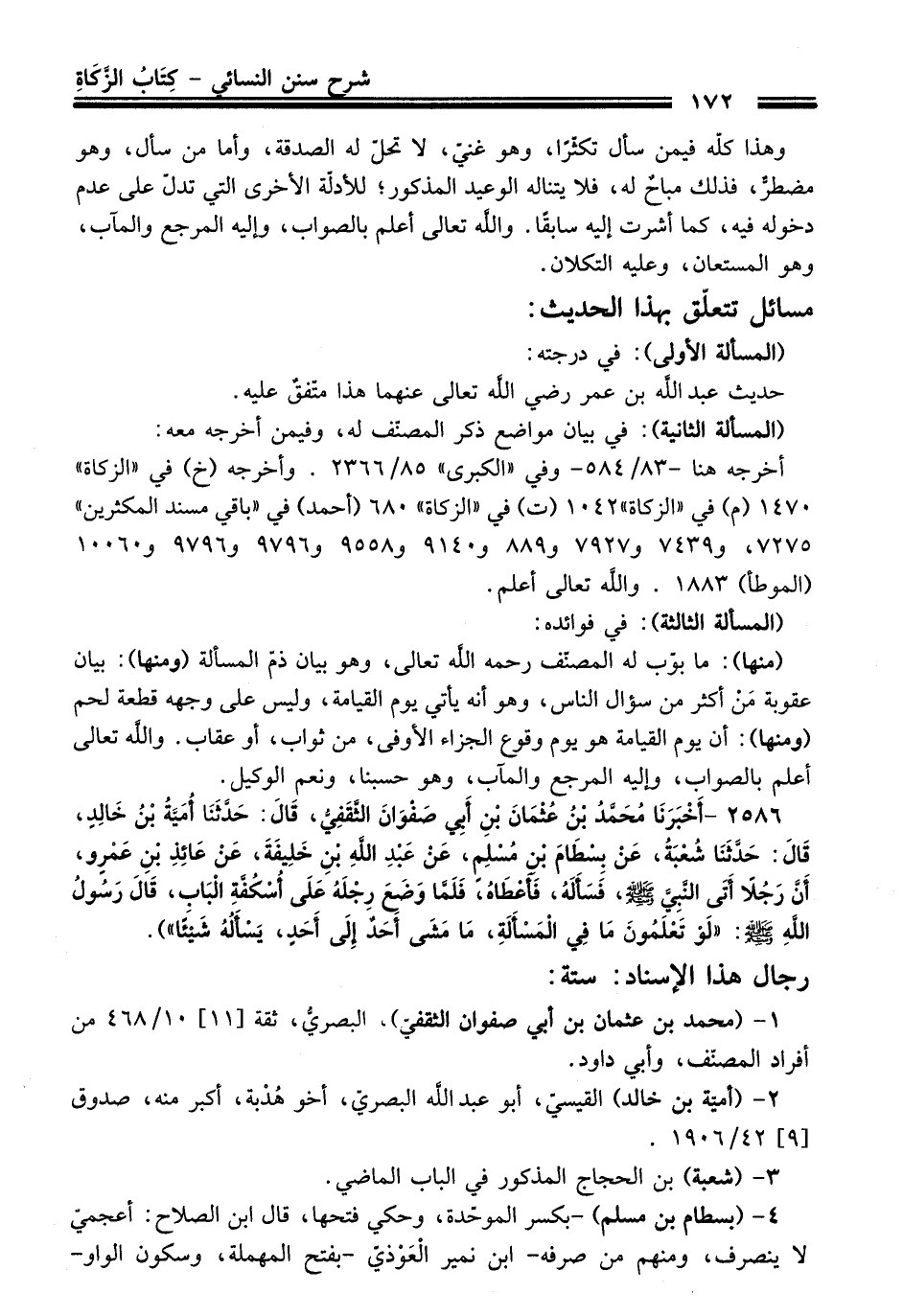 2586 - (أَخْبَرَنَا مُحَمَّدُ بْنُ عُثْمَانَ بْنِ أَبِي صَفْوَانَ الثَّقَفِيُّ, قَالَ: حَدَّثَنَا أُمَيَّةُ بْنُ خَالِدٍ, قَالَ: حَدَّثَنَا شُعْبَةُ, عَنْ بِسْطَامِ بْنِ مُسْلِمٍ, عَنْ عَبْدِ اللَّهِ بْنِ خَلِيفَةَ, عَنْ عَائِذِ بْنِ عَمْرٍو, أَنَّ رَجُلاً أَتَى النَّبِيَّ - صلى اللَّه عليه وسلم -, فَسَأَلَهُ, فَأَعْطَاهُ, فَلَمَّا وَضَعَ رِجْلَهُ عَلَى أُسْكُفَّةِ الْبَابِ, قَالَ رَسُولُ اللَّهِ - صلى اللَّه عليه وسلم -: «لَوْ تَعْلَمُونَ مَا فِي الْمَسْأَلَةِ, مَا مَشَى أَحَدٌ إِلَى أَحَدٍ, يَسْأَلُهُ شَيْئًا»).