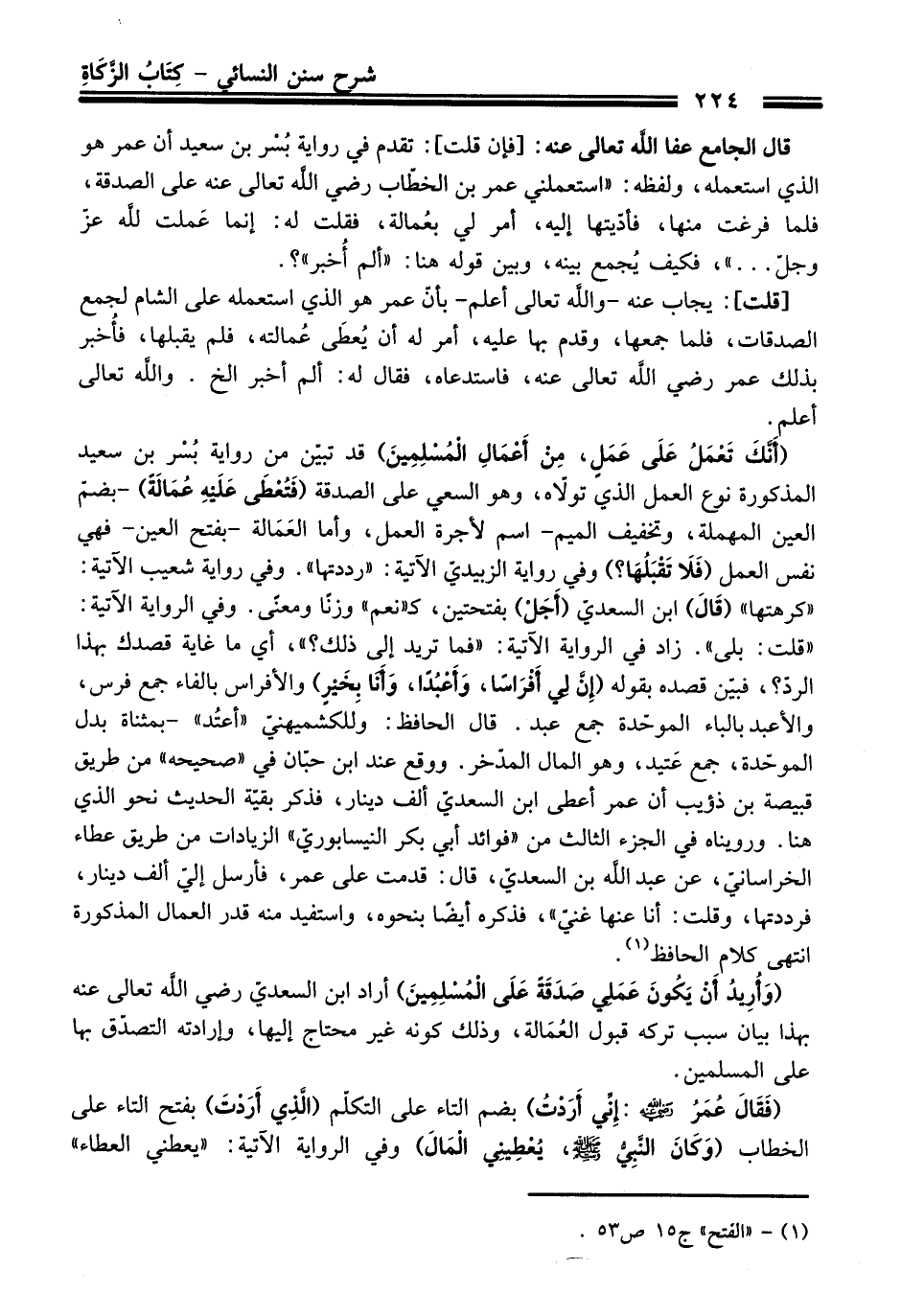 [قلت]: يجاب عنه - واللَّه تعالى أعلم- بأن عمر هو الذي استعمله على الشام لجمع الصدقات، فلما جمعها، وقدم بها عليه، أمر له أن يُعطَى عُمالته، فلم يقبلها، فأُخبر بذلك عمر - رضي اللَّه تعالى عنه -، فاستدعاه، فقال له: ألم أخبر الخ. واللَّه تعالى أعلم.