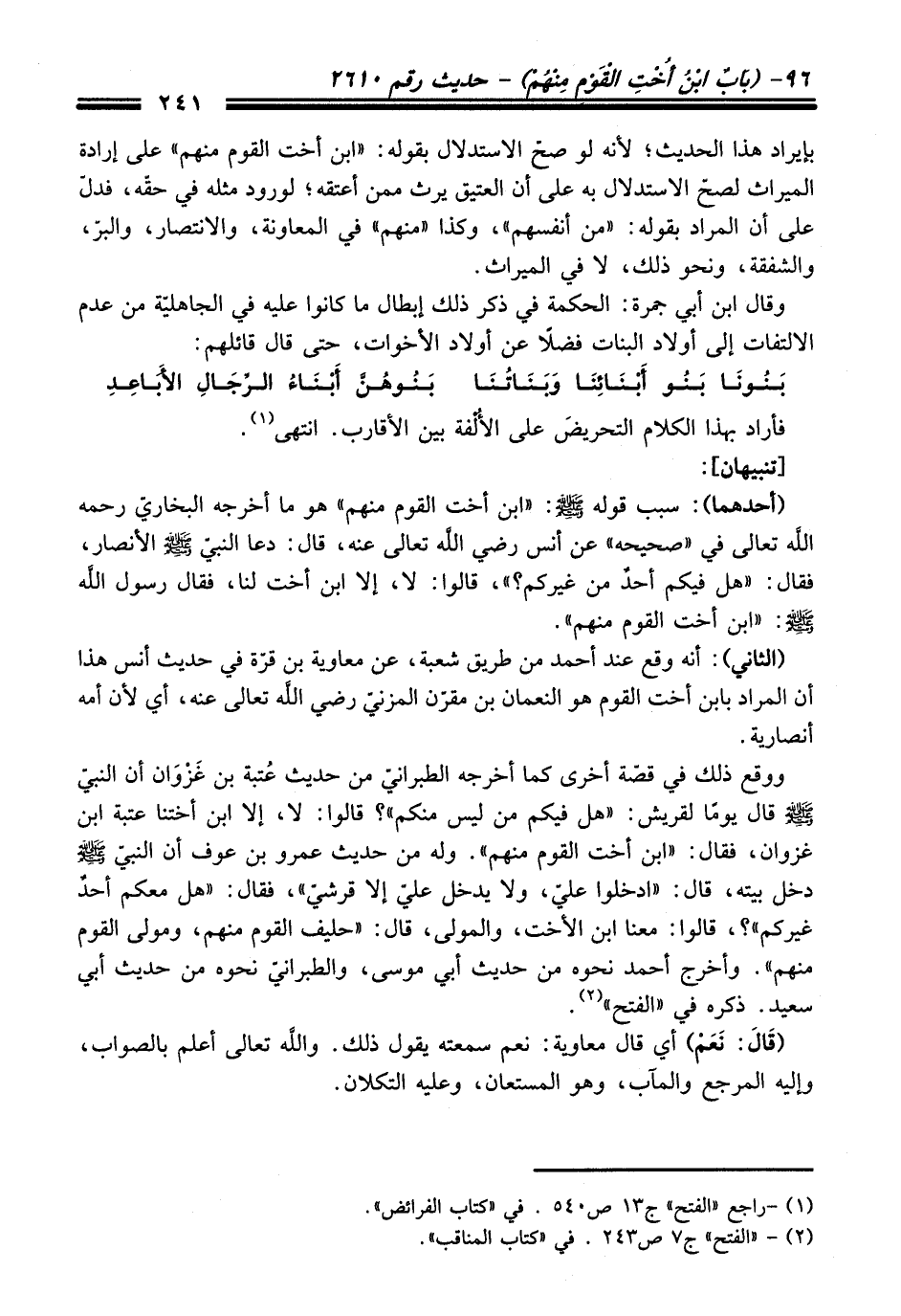 (¬1) - راجع "الفتح" ج 13 ص 540. في "كتاب الفرائض".