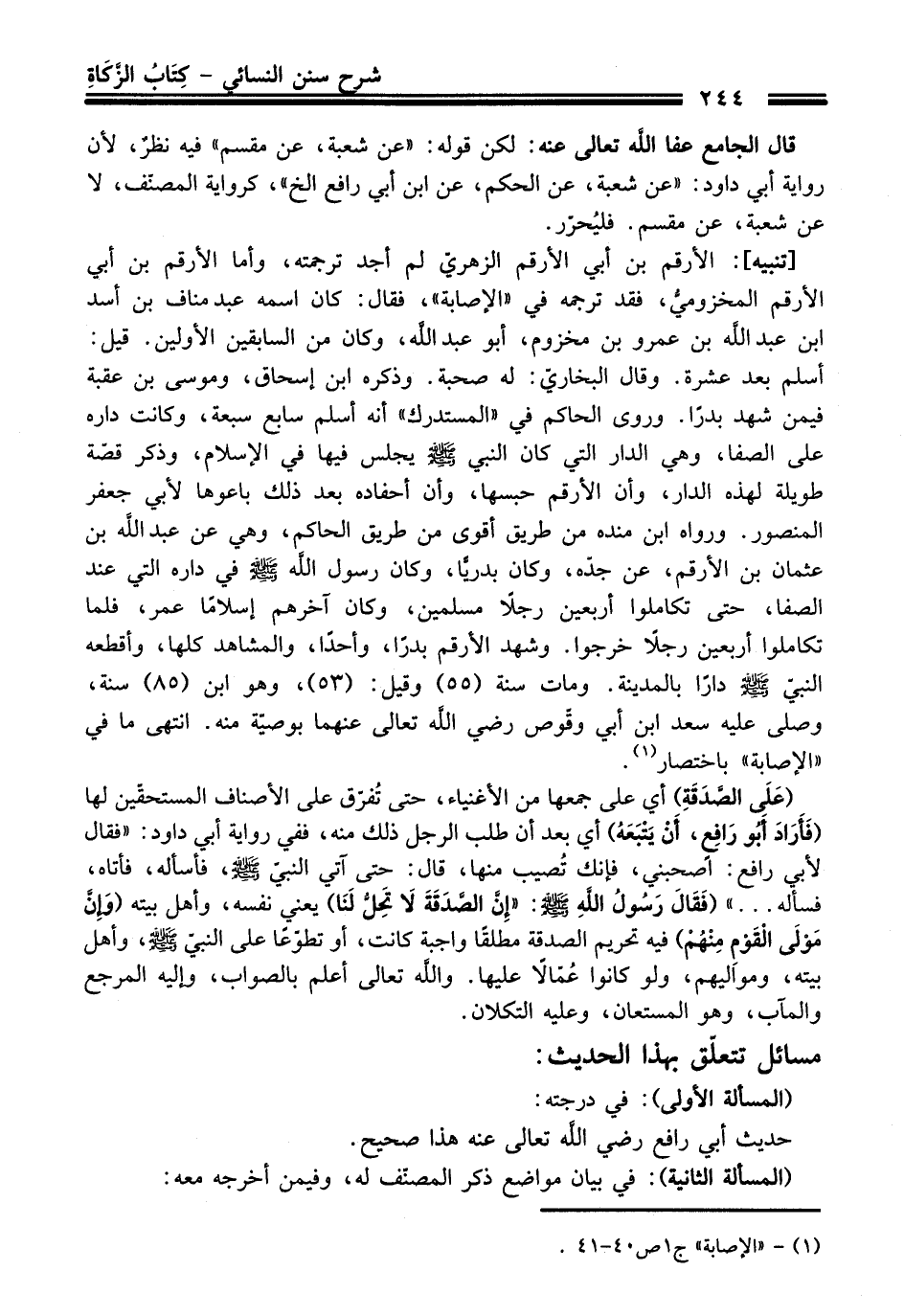 قال الجامع - عفا اللَّه تعالى عنه -: لكن قوله: "عن شعبة، عن مقسم" فيه نظرٌ, لأن رواية أبي داود: "عن شعبة، عن الحكم، عن ابن أبي رافع الخ"، كرواية المصنّف، لا عن شعبة، عن مقسم. فليُحرّر.
