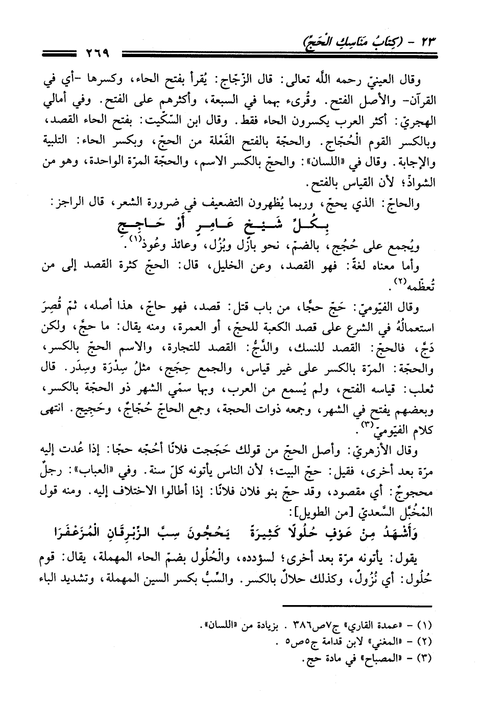 (¬3) - "المصباح" في مادة حج.
