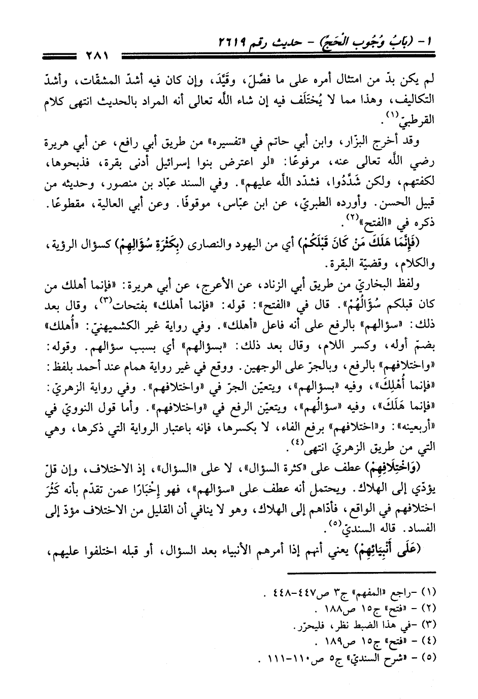 (¬5) - "شرح السنديّ" ج 5 ص 110 - 111.