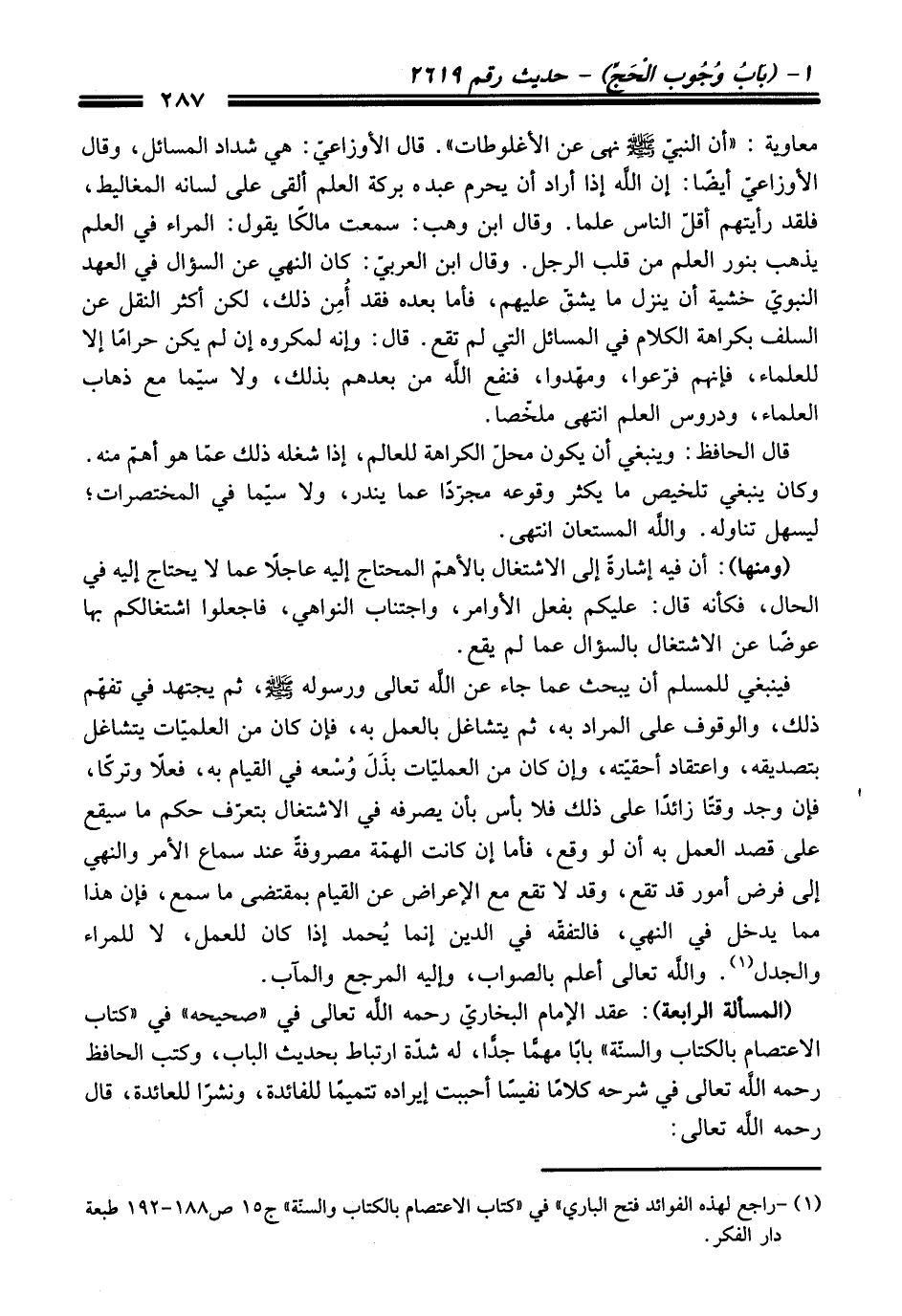 (¬1) - راجع لهذه الفوائد "فتح الباري" في "كتاب الاعتصام بالكتاب والسنّة" ج 15 ص 188 - 192 طبعة دار الفكر.