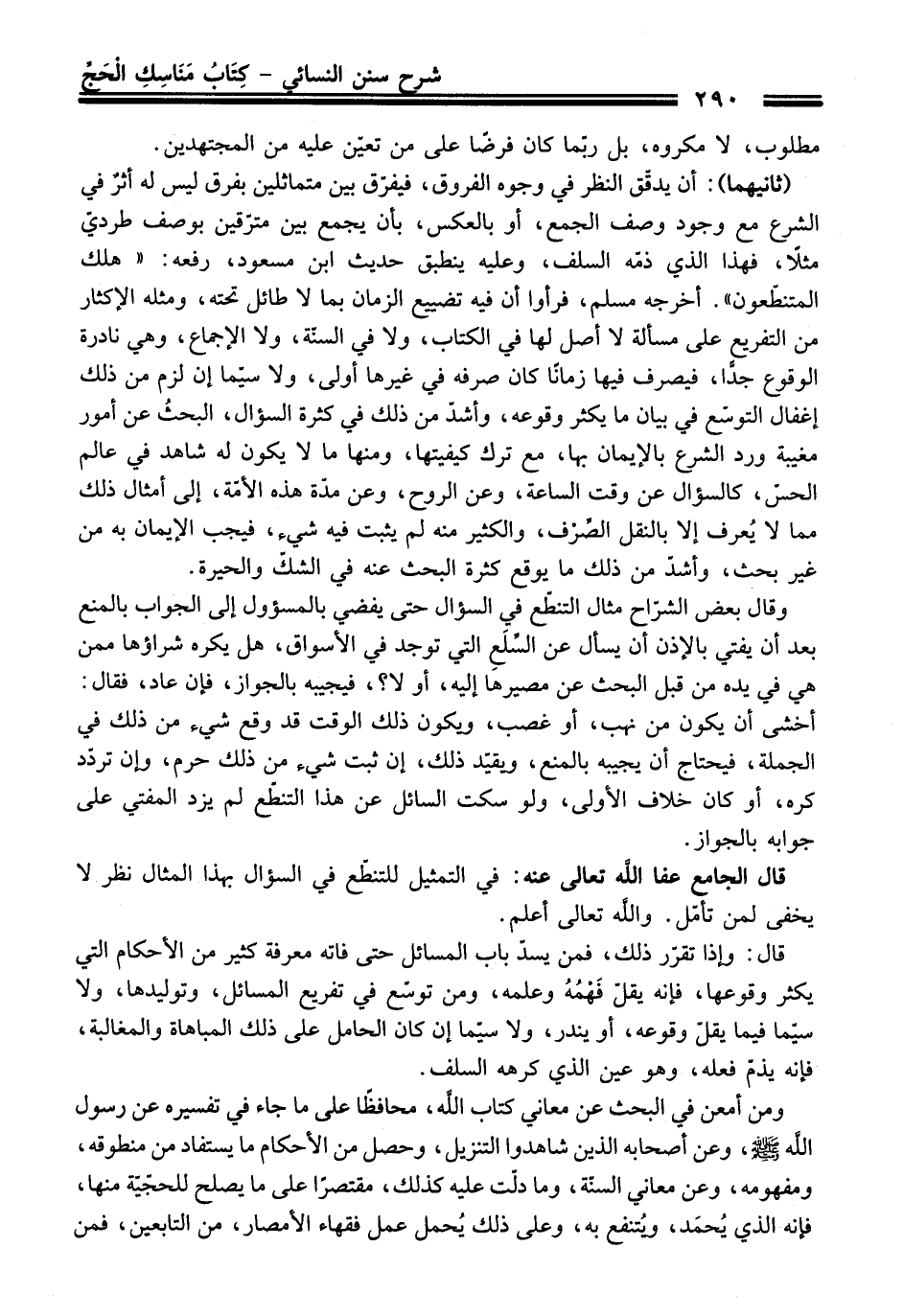 قال الجامع - عفا اللَّه تعالى عنه -: في التمثيل للتنطّع في السؤال بهذا المثال نظر لا يخفى لمن تأمّل. واللَّه تعالى أعلم.